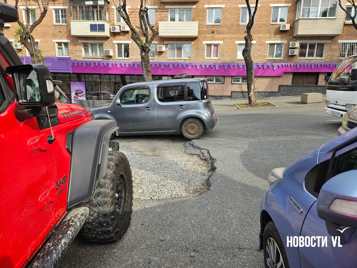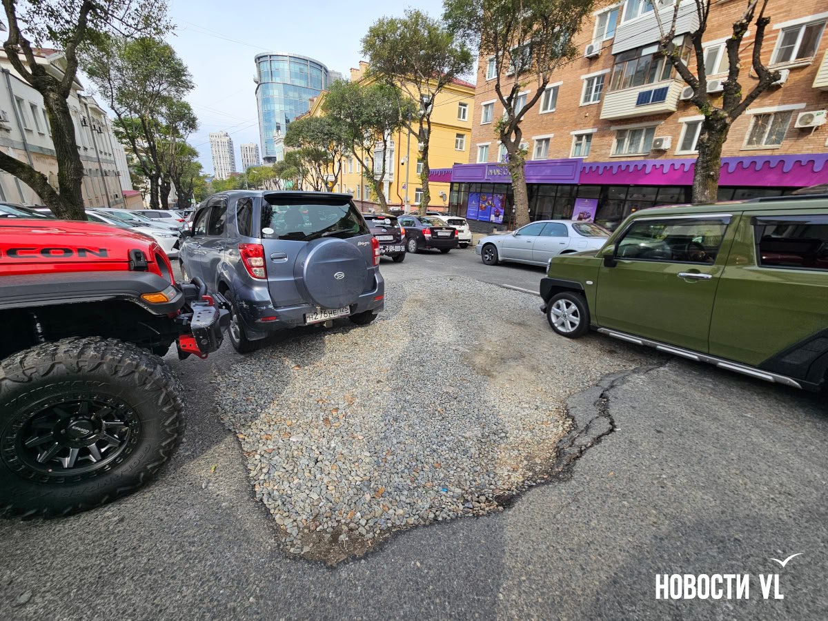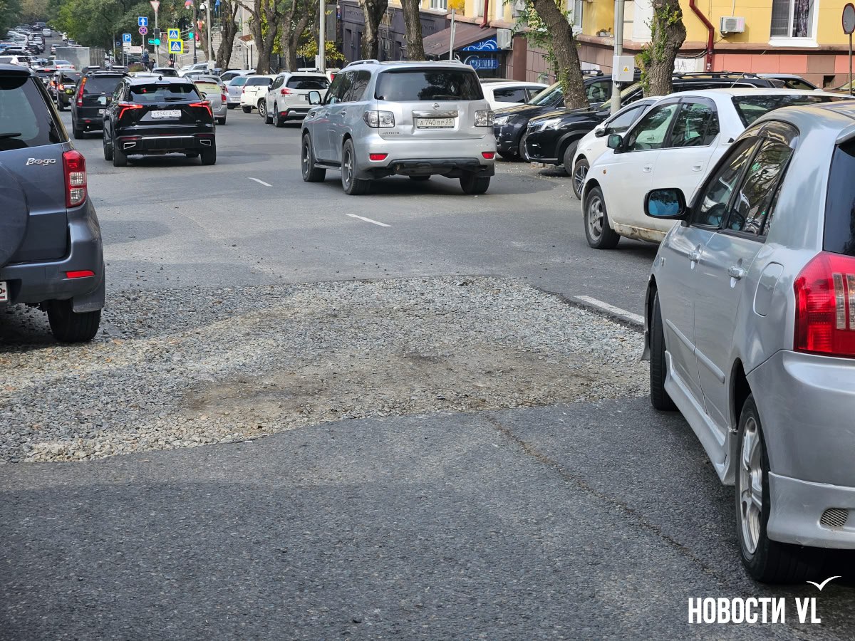 Несколько недель назад в районе Фонтанной, 35 во Владивостоке ремонтировали участок коммуникаций. Рабочие давно ушли, оставив после себя огромную яму, засыпанную крупным щебнем, без единого предупреждающего знака. За прошедшее после ухода работяг время щебень разлетелся по всей дороге, а в ней самой образовалась высокая «ступенька». Машины пытаются провал объехать, усугубляя и без того постоянную пробку на Фонтанной.