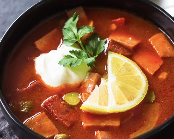 Солянка — густой и сытный суп, который может показаться довольно тяжелым благодаря своему богатому составу. Однако добавление лимона в этот рецепт помогает: