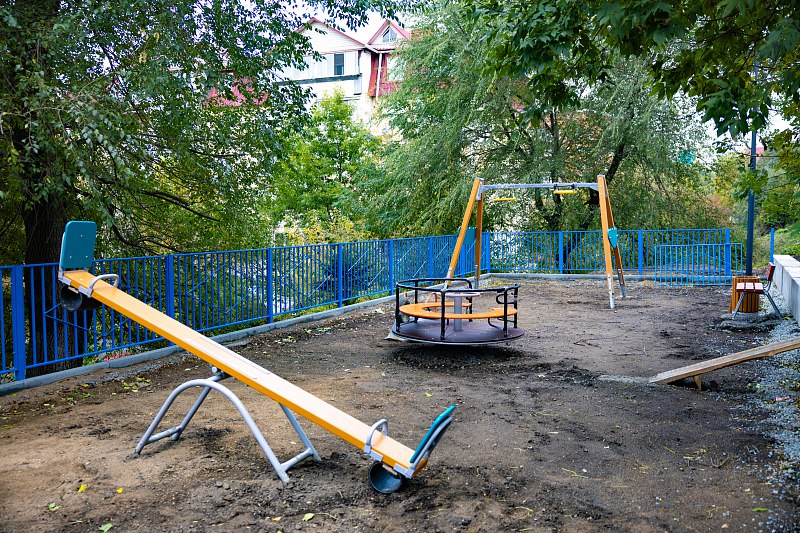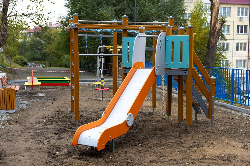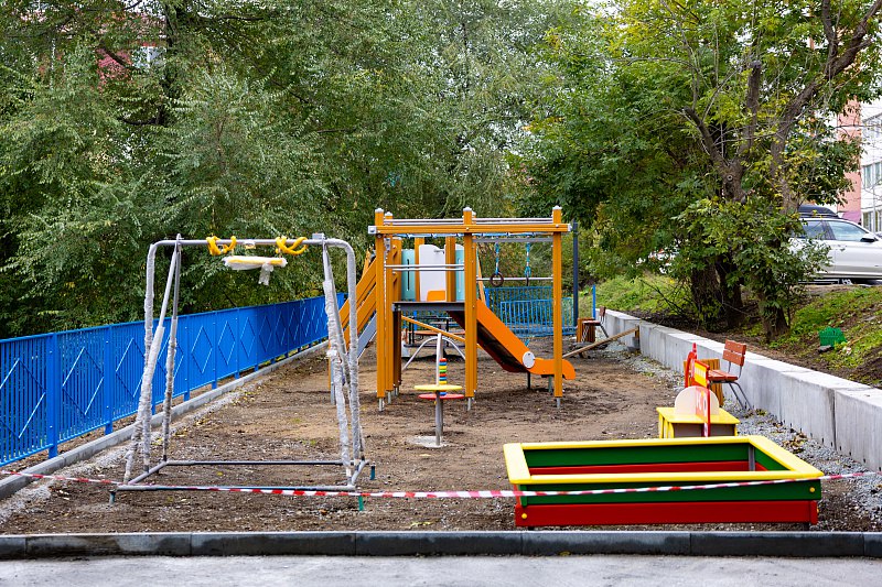 Еще в одном дворе Владивостока завершается ремонт. Новые горки, качели и лавочки установлены на Вострецова, 10б.