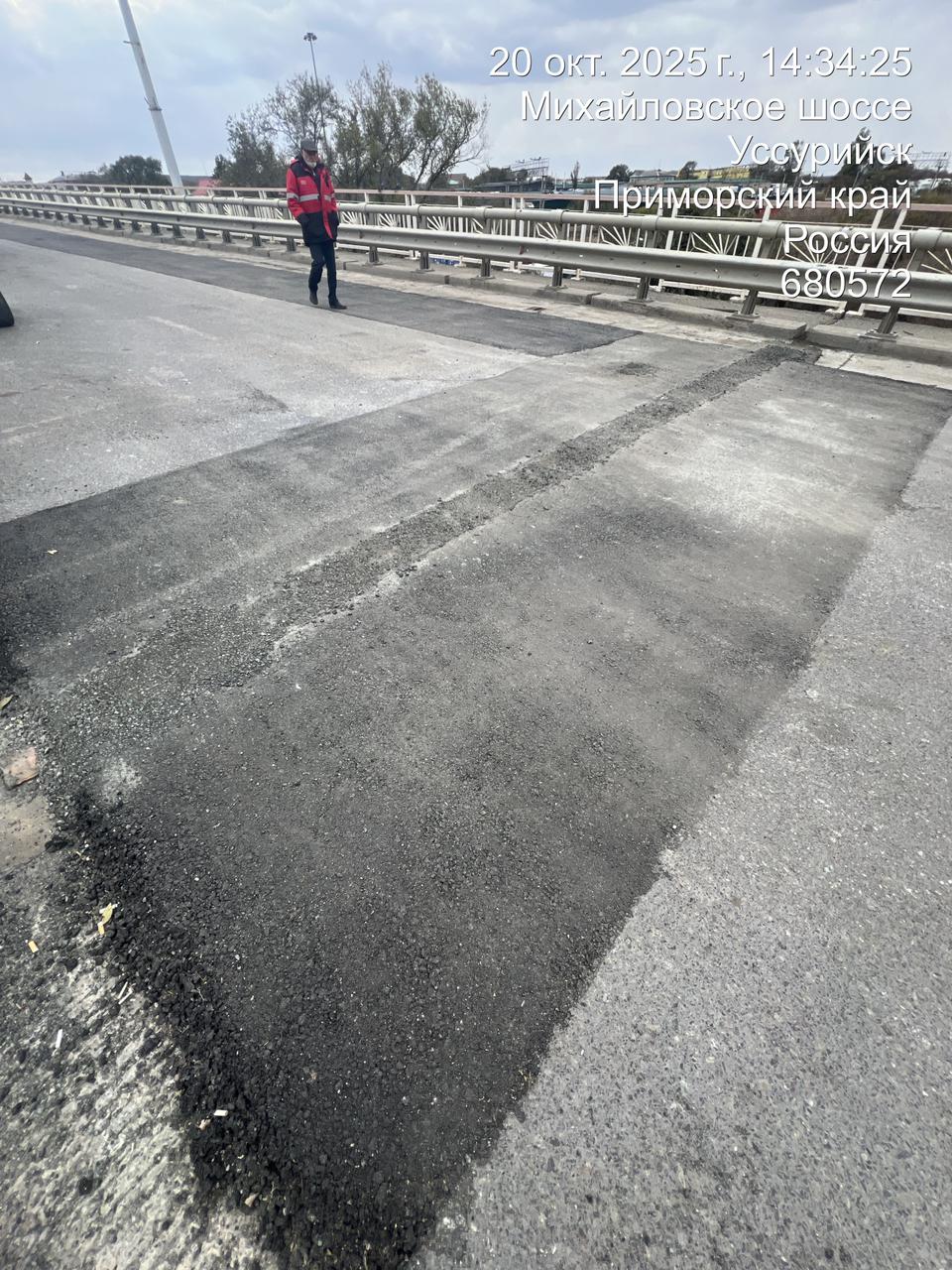 Сейчас бригада рабочих демонтирует старый слой асфальтобетонного покрытия и меняет демонтажные швы на новые. Общий объем выполнения составляет – 42 %.