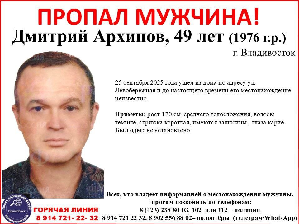 Родственники ведут поиски Дмитрия Архипова с 25 сентября. Он проживает в частном доме на улице Левобережной. По рассказам соседей, мужчина ушёл ночью или рано утром, оставив все личные вещи. Полиция передала дело сотрудникам уголовного розыска, семья также обратилась к волонтёрам. Поблизости от его дома находится Богатинское водохранилище и густой лес – на поиски не хватает людей. Активисты и семья пропавшего просят отозваться всех неравнодушных.