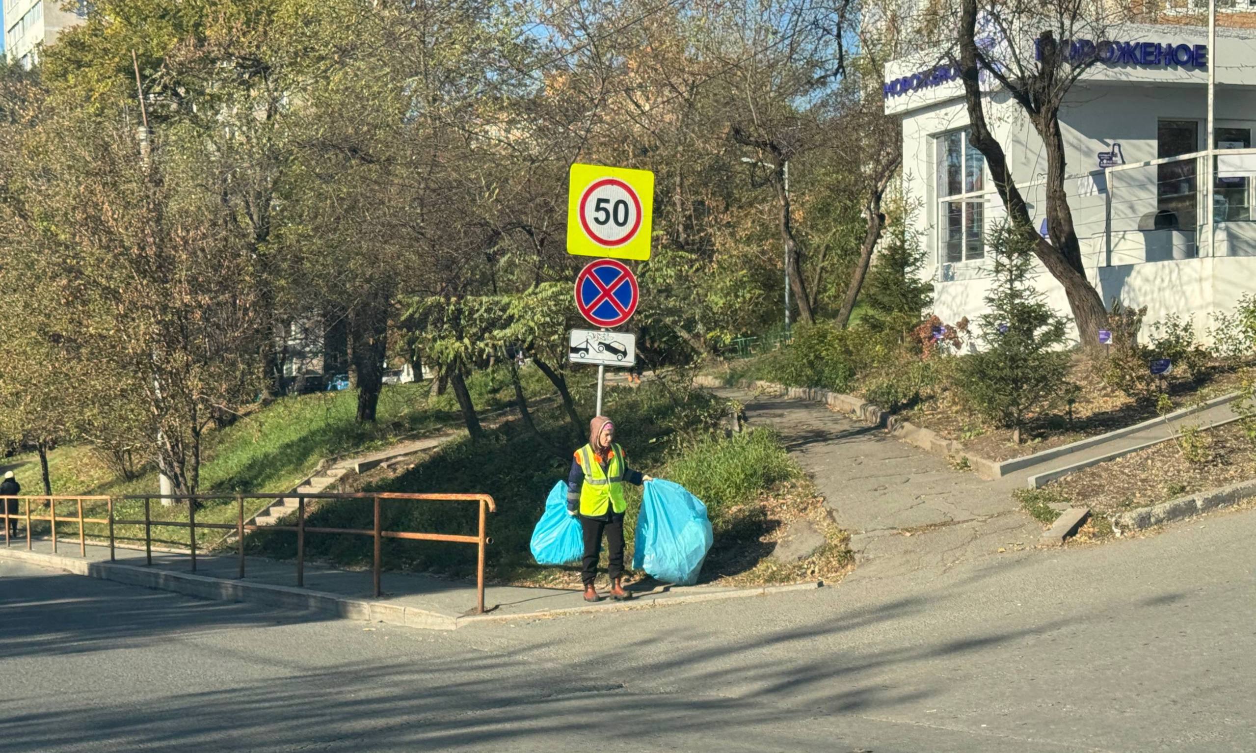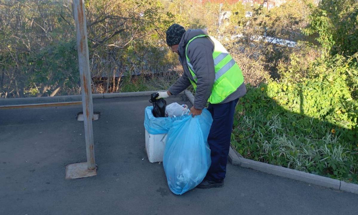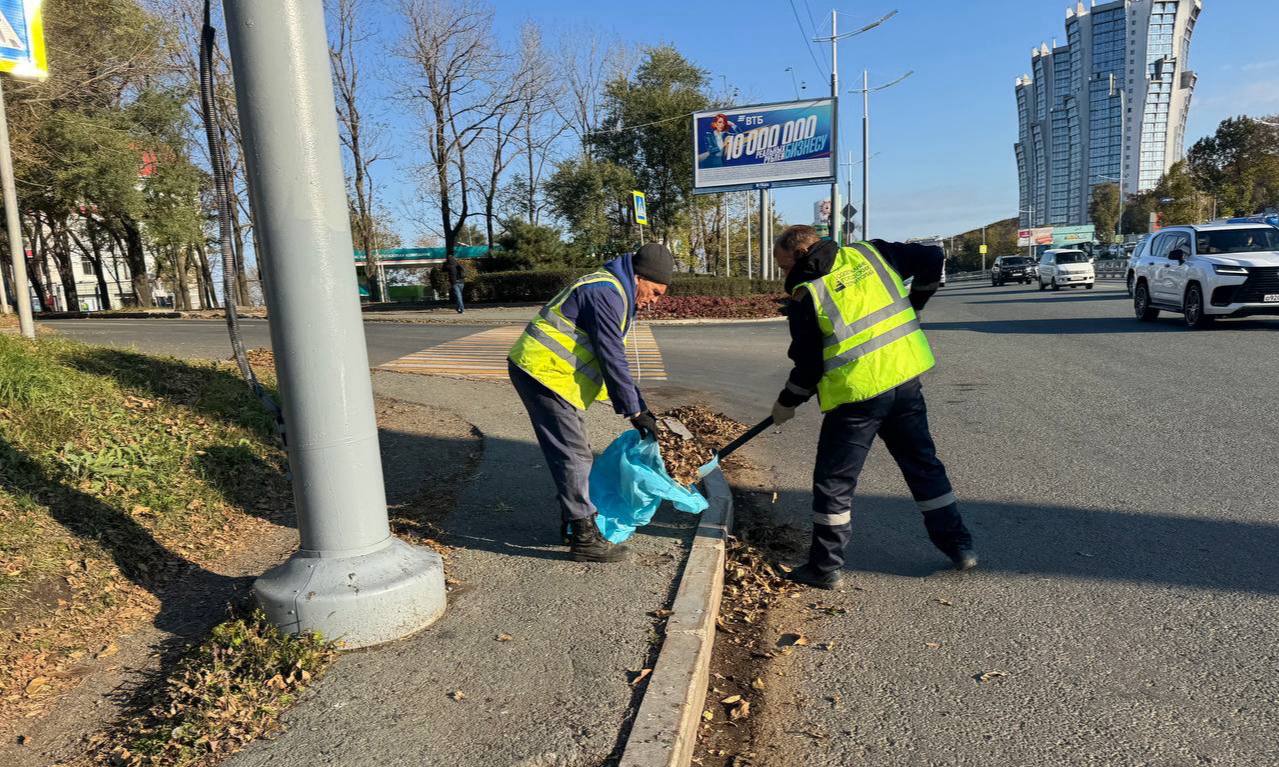 Санитарные службы продолжают уборку мусора, прометание остановок и удаление несанкционированной рекламы во всех районах Владивостока.