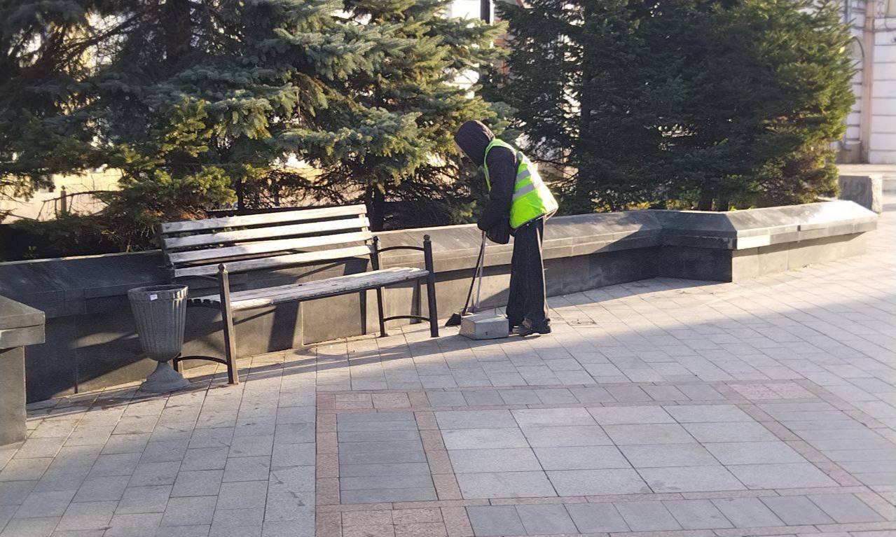 Ленинский район — ручная уборка тротуаров в центре и на улице Светланской.