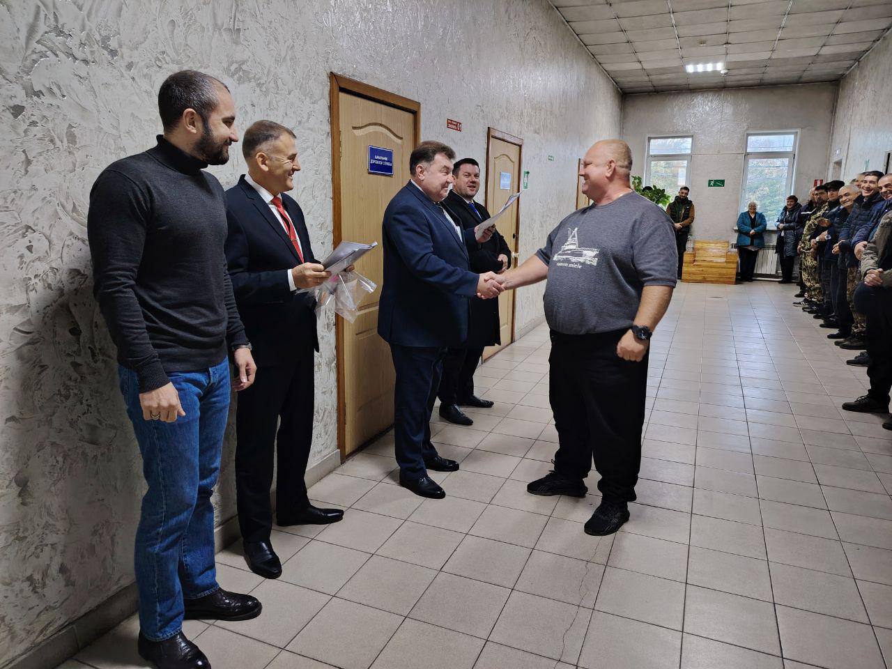 В честь Дня дорожного хозяйства генеральный директор АО «Уссурийское предприятие тепловых сетей» Олег Попов поздравил и наградил сотрудников, чья работа связана с благоустройством и содержанием городских дорог.