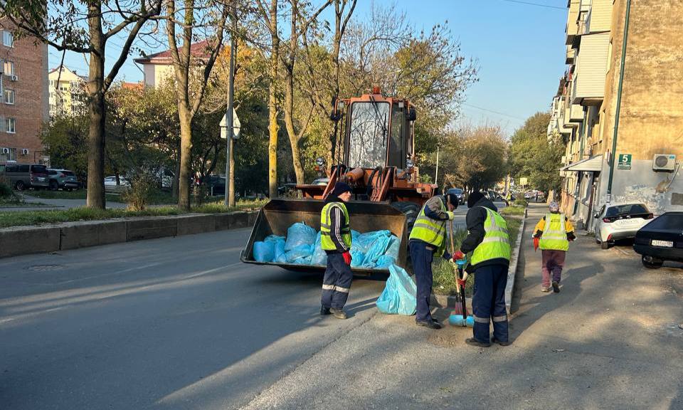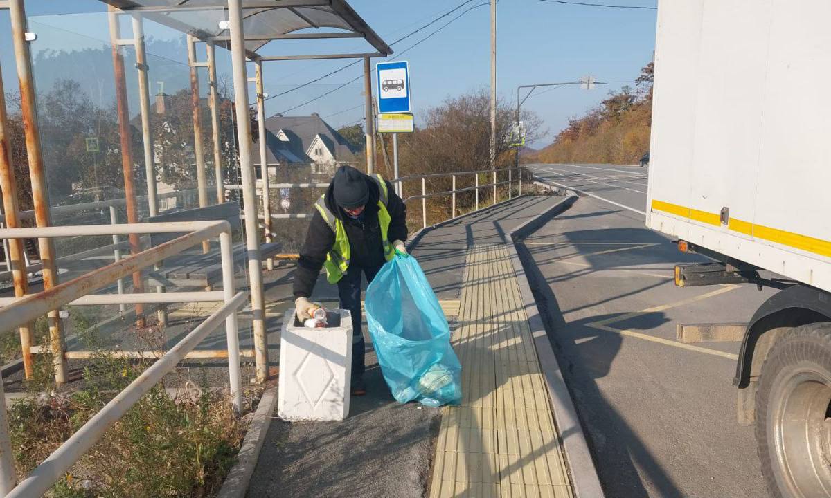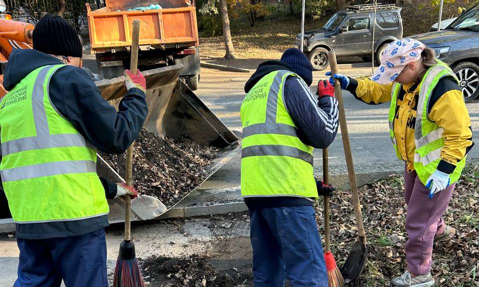Санитарные службы продолжают уборку мусора, прометание остановок и удаление несанкционированной рекламы во всех районах Владивостока.