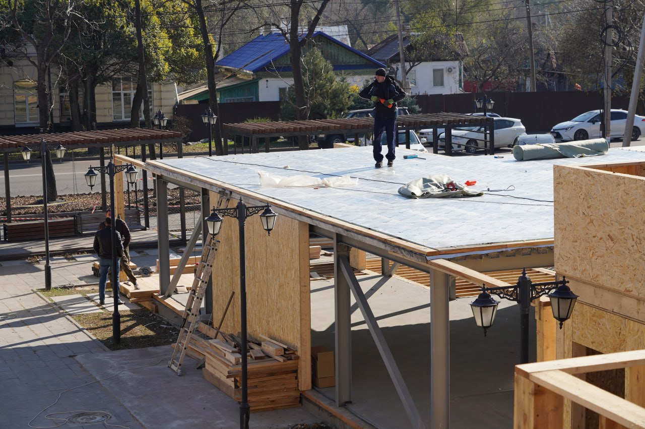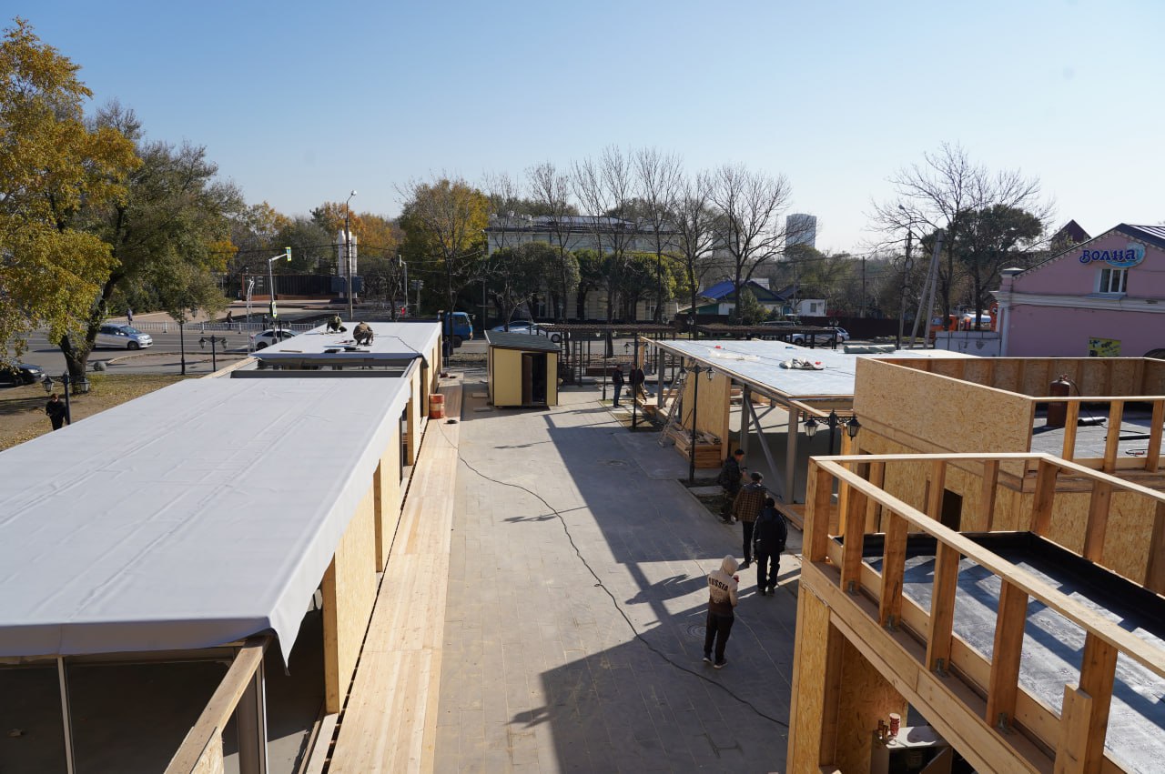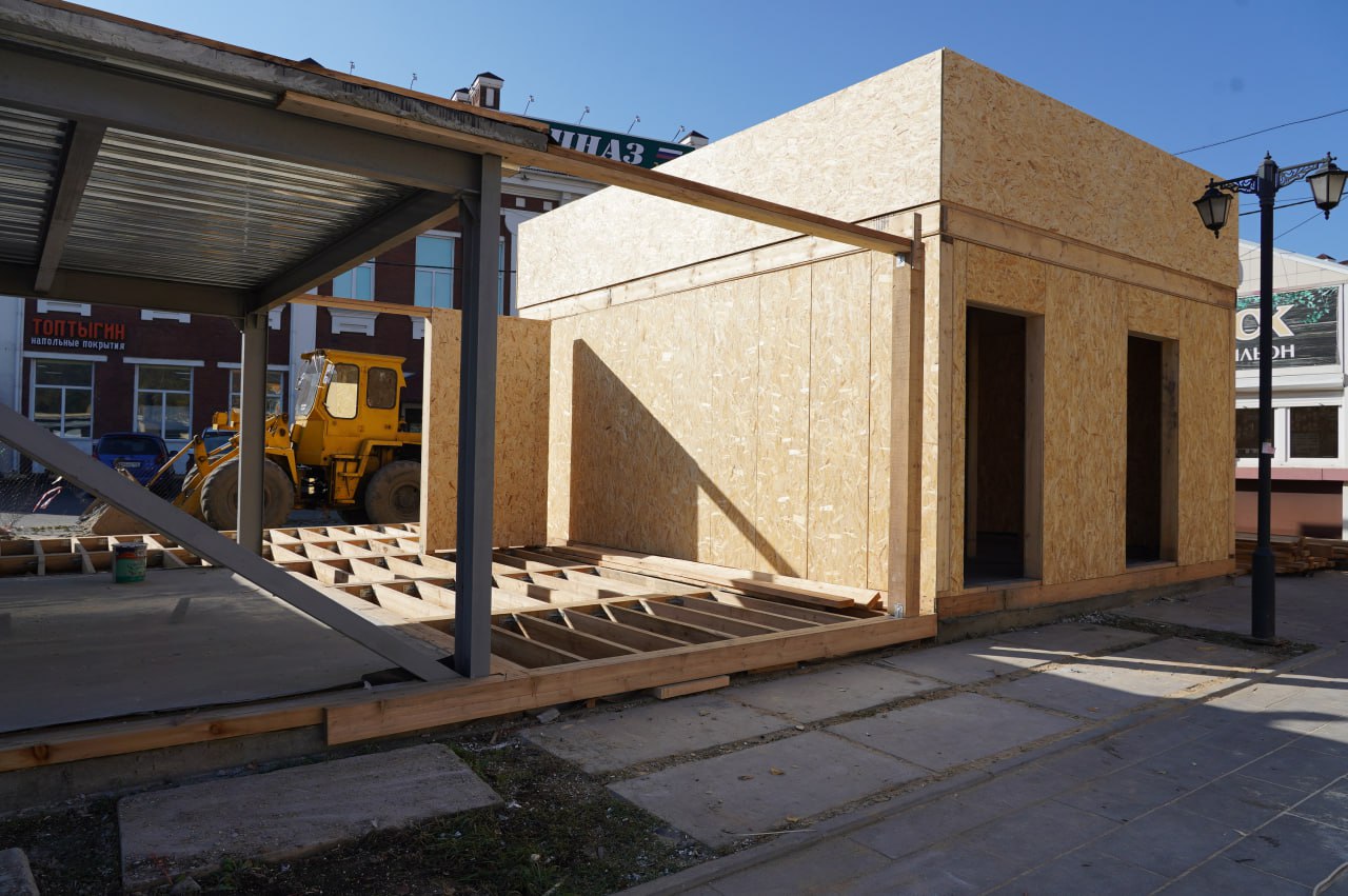 В старом центре Уссурийска возводят новые объекты для жителей и гостей муниципалитета – павильоны общественного питания, торговую точку и туалетную комнату.