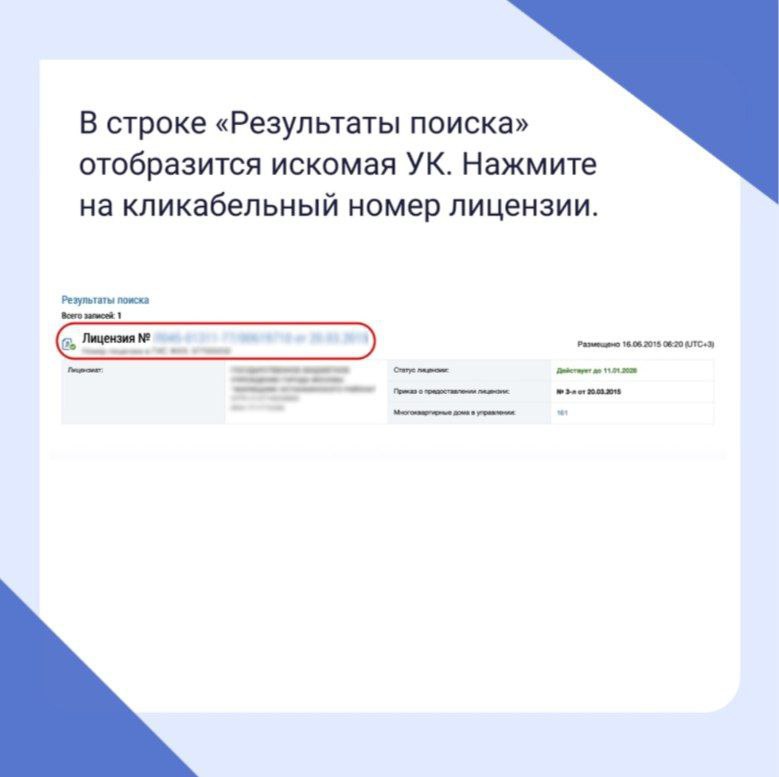 В реестре можно найти номер и дату выдачи лицензии, юридический адрес УК, информацию о руководителе и перечень обслуживаемых домов.