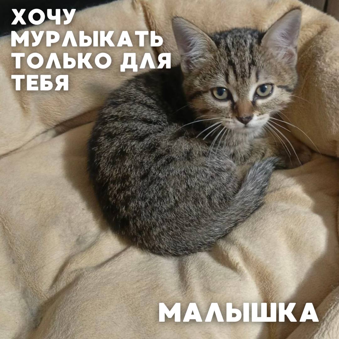 Малышка — крошка, спасённая с остановки. Уже освоила лоток и когтеточку, обработана от паразитов. Очень доверчивая и тянется к людям. Ищет заботливые, надёжные руки и свой тёплый дом