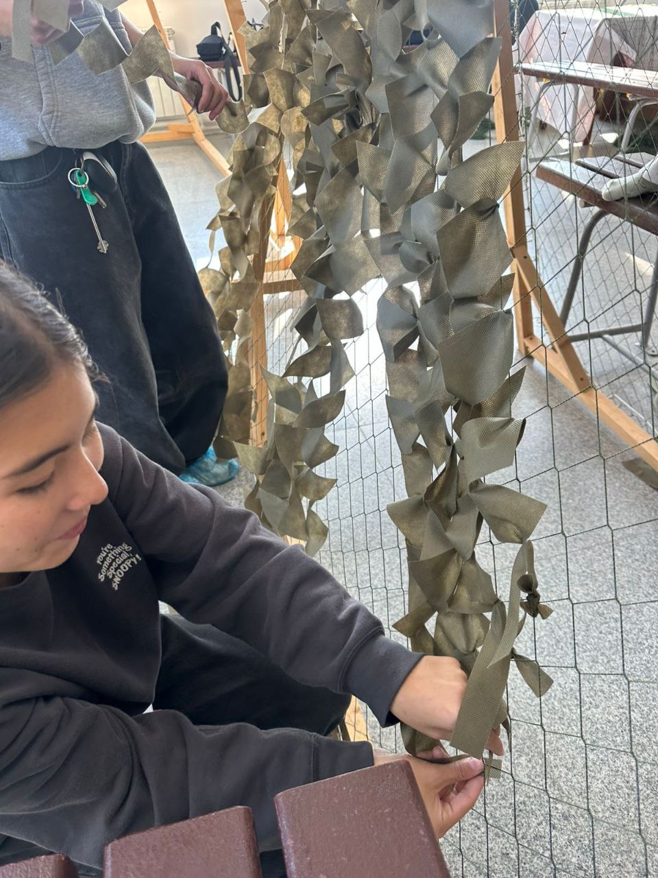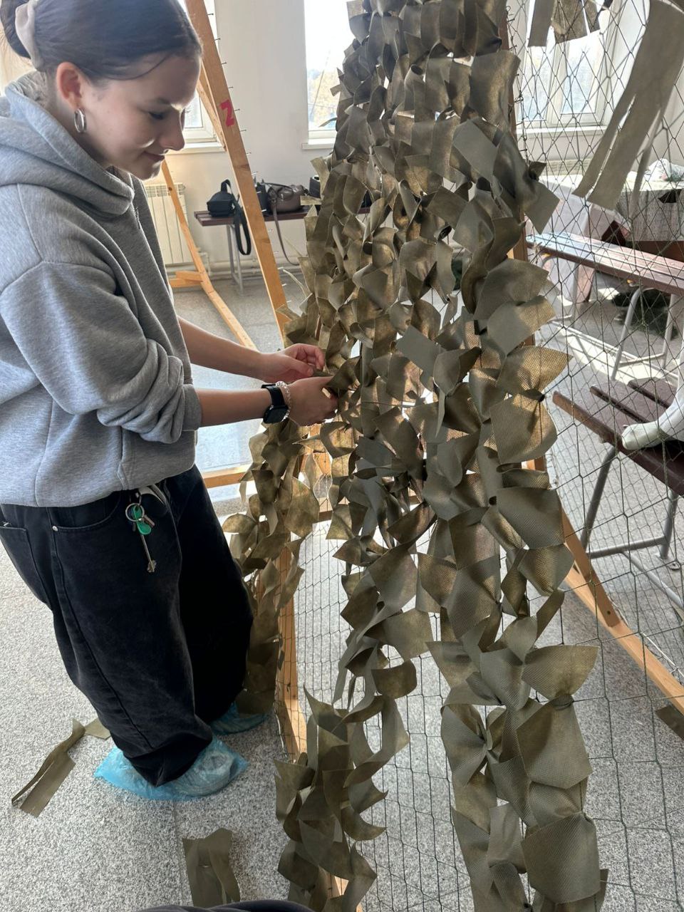 Ребята плели для участников СВО маскировочные сети, которые помогут нашим военным скрыть от глаз противника технику, инженерные сооружения и места укрытия самих бойцов.