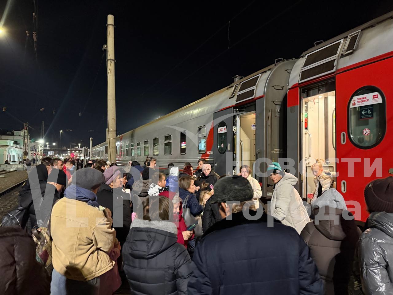 - Всех пассажиров пустили в вагоны. Сейчас идет повторный осмотр колесных пар подвижного состава. О причинах эвакуации пока не сообщается.// Newsvlru