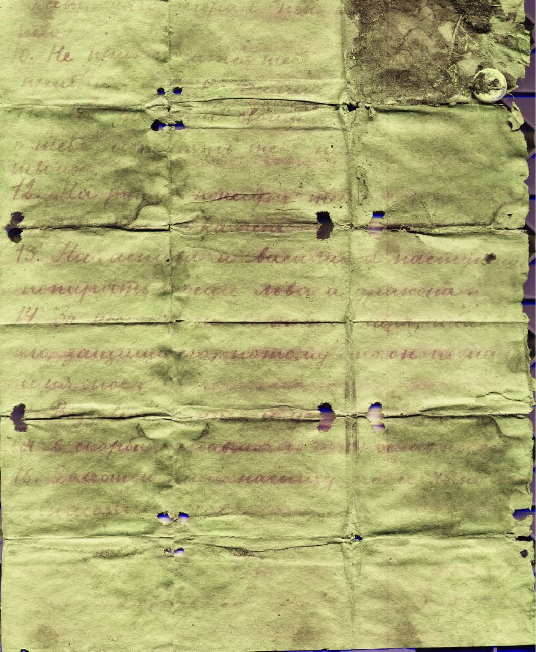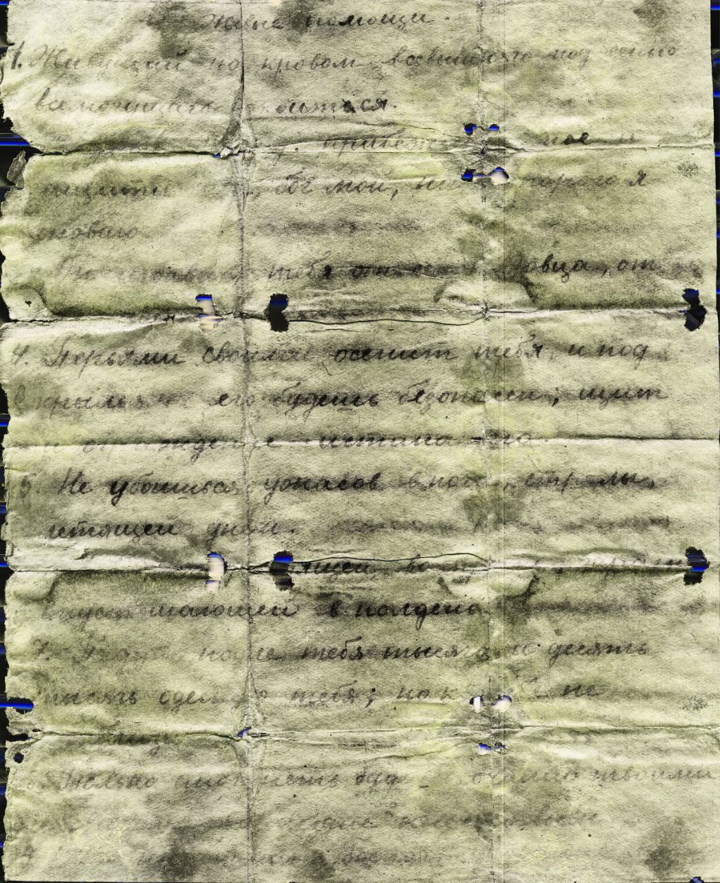 При одном из бойцов была обнаружена ладанка, а также рукописный лист бумаги.