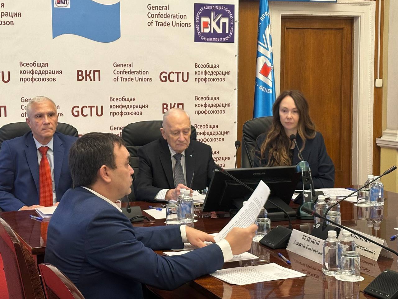 Открыл заседание комиссии Всеобщей конфедерации профсоюзов по вопросам охраны труда, экологии, здоровья и социального обеспечения трудящихся. Основная тема мероприятия - оценка возможностей для реализации риск-ориентированного подхода к охране труда в странах Содружества Независимых Государств.