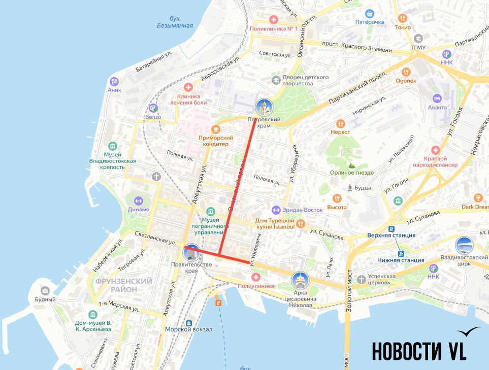 Для крестного хода движение и парковку автомобилей ограничат с 11:30 до 13:00 на следующих участках Светланской и Океанского проспекта.