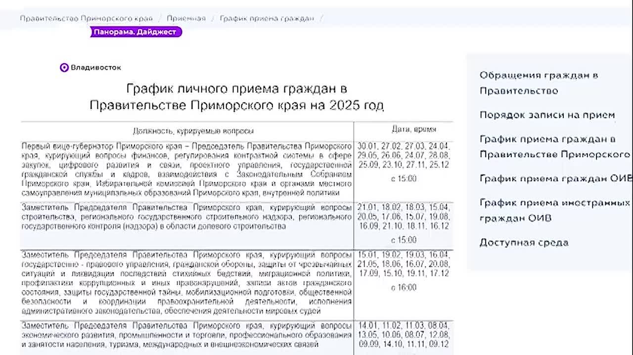 График приёма граждан размещён на сайте правительства края.