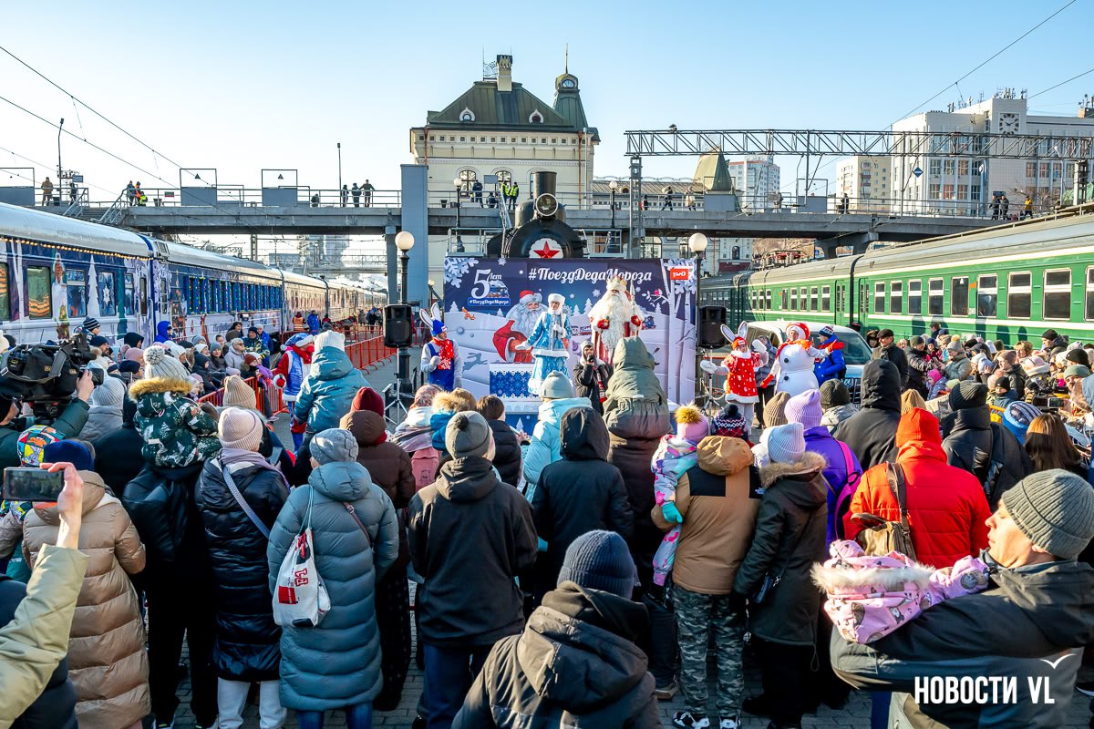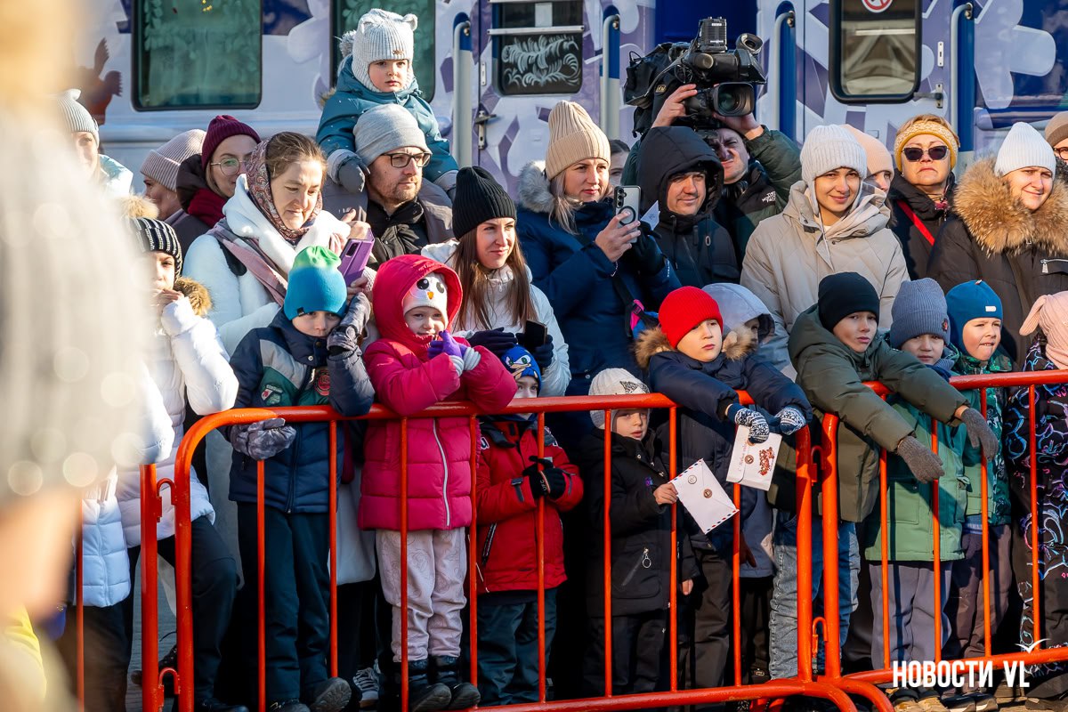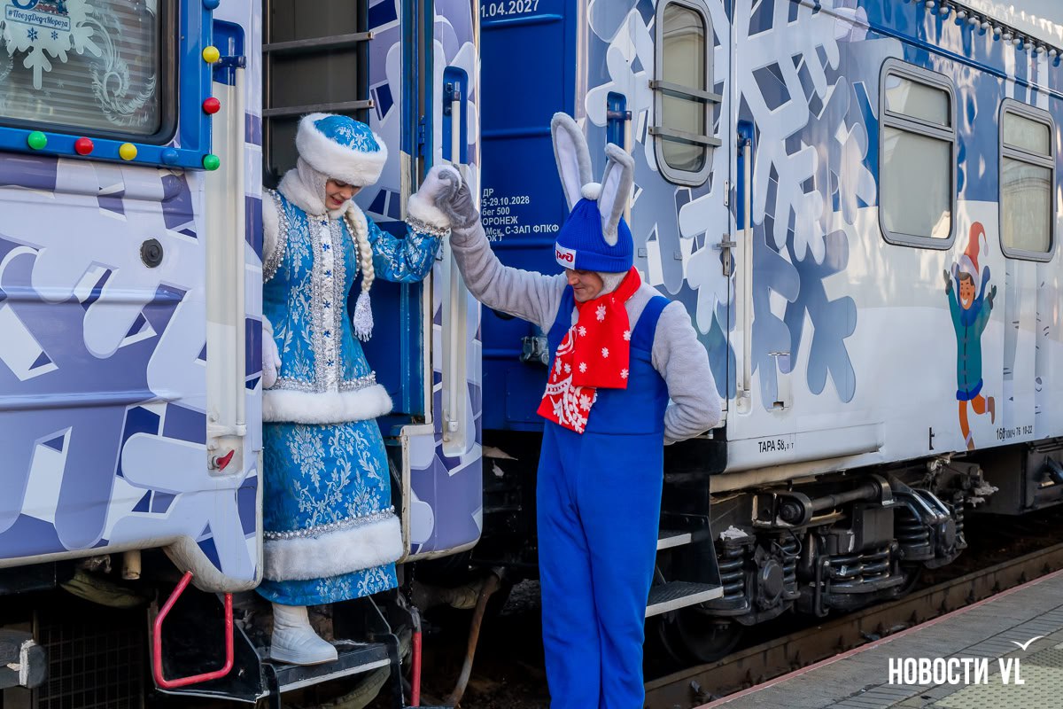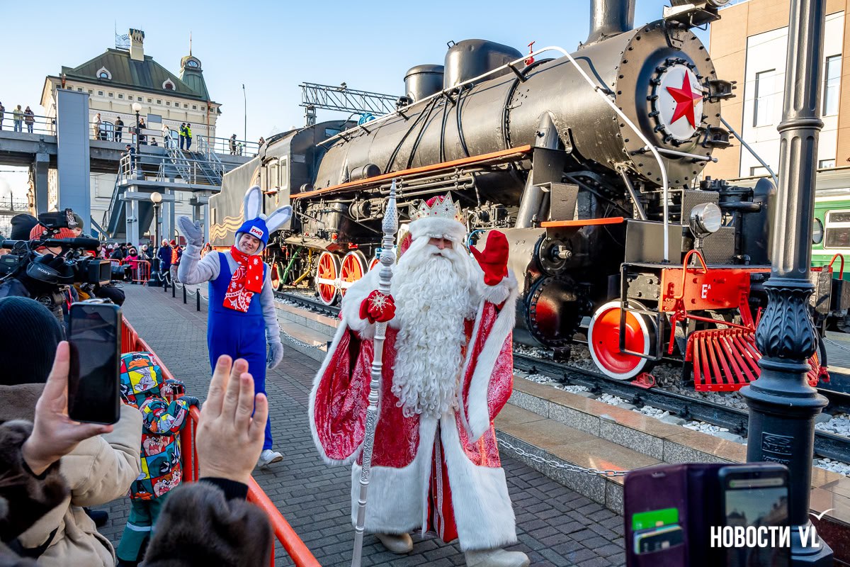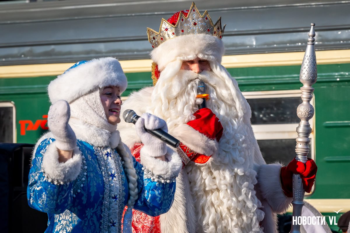 Дед Мороз со Снегурочкой и их друзьями прибыли на железнодорожный вокзал Владивостока