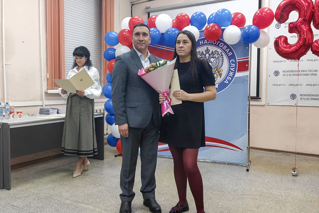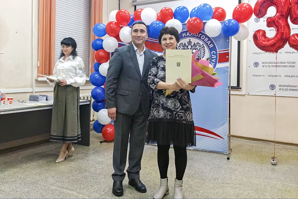 Глава Находкинского городского округа Тимур Магинский поздравил коллектив Межрайонной инспекции Федеральной налоговой службы № 16 по Приморскому краю с 35-летием создания ведомства и Днем работника налоговых органов.