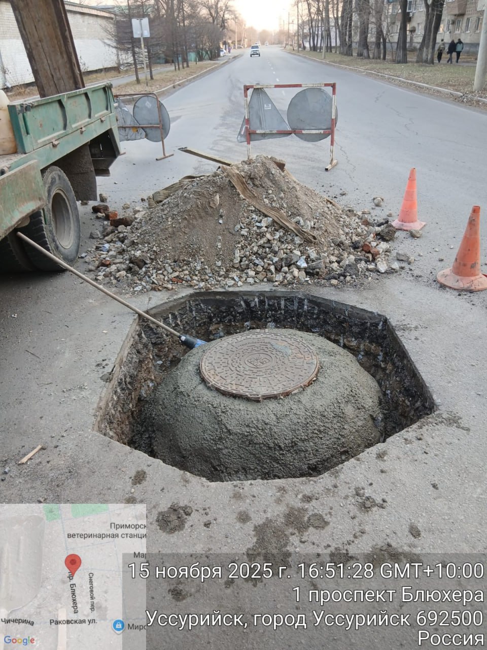 Выполнен ремонт люка на проспекте Блюхера и замена ливневок по улице Октябрьской.