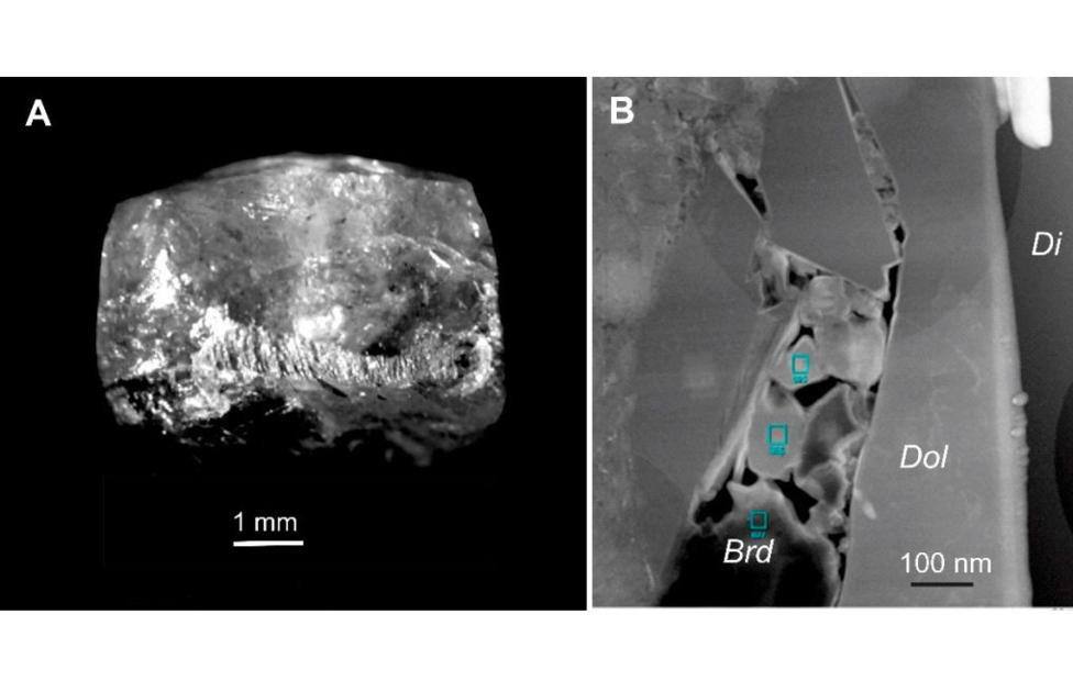 Российские ученые впервые нашли очень редкий минерал брэдлиит в алмазе из глубин Земли, сообщили в Минобрнауки.