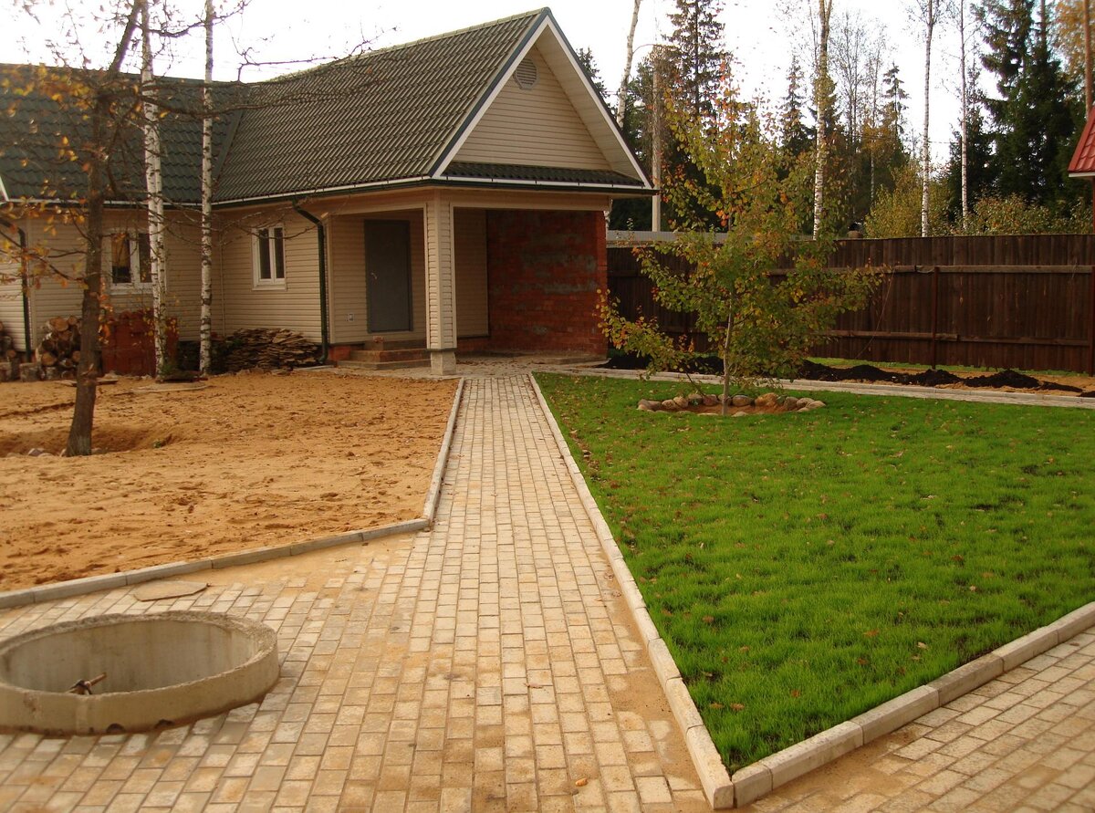 - Строительные работы: Здесь осуществляется прокладка систем дренажа и водоотвода, а также укладка коммуникаций — от освещения до систем автоматического полива.