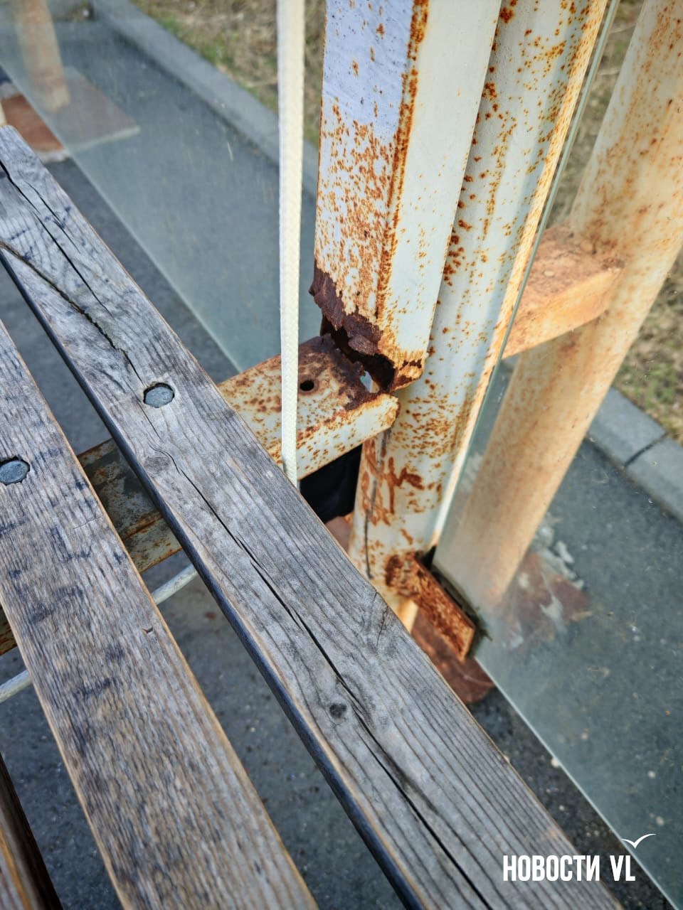 Люди отремонтировали лавку сами как смогли.Подпишись на NewsVL.ru