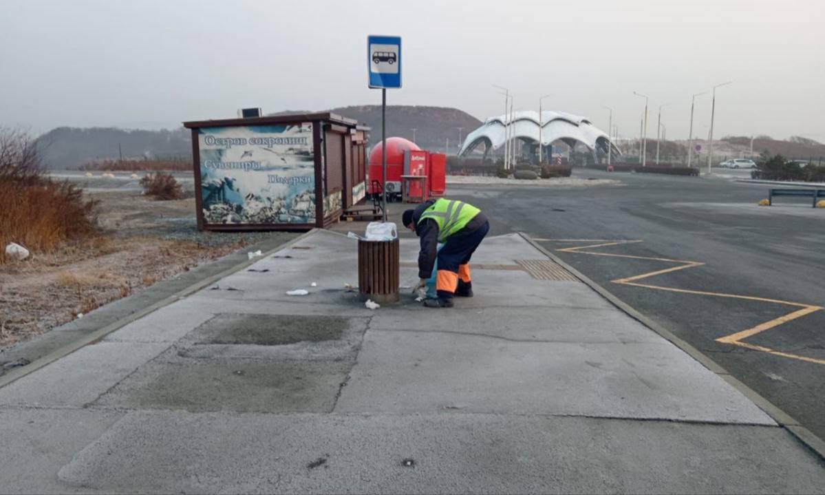 Русский остров — ручная уборка остановочных павильонов в посёлках Экипажный и Воевода; механизированное устройство кюветов в районе Подножья; грейдирование по маршруту Рында — Воевода.