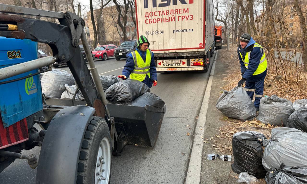 Первореченский район — комплексный вывоз мешков на Военном шоссе.