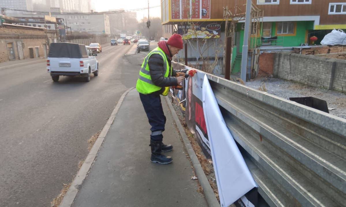 Специалисты обеспечения безопасности дорожного движения ремонтируют леерные ограждения на трассе Седанка-Патрокл, а также устанавливают дорожные знаки на улицах Поселковой, Русской и Шепеткова.