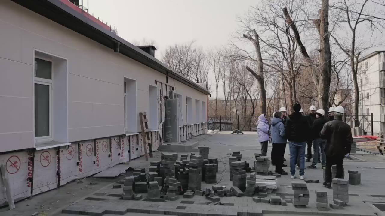 Новые площадки устанавливают рядом с детсадом на Постышева, 7а. Сейчас продолжается его капитальный ремонт. Объект готов на 90%.