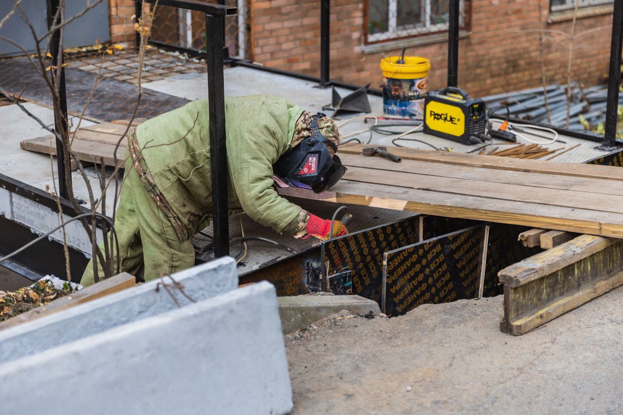 На 1-й Морской, 8 завершен ремонт двора. Были смонтированы переходные мостики в подъезды, выполнена гидроизоляция и благоустроены подходы.