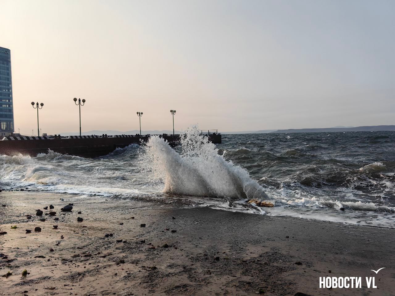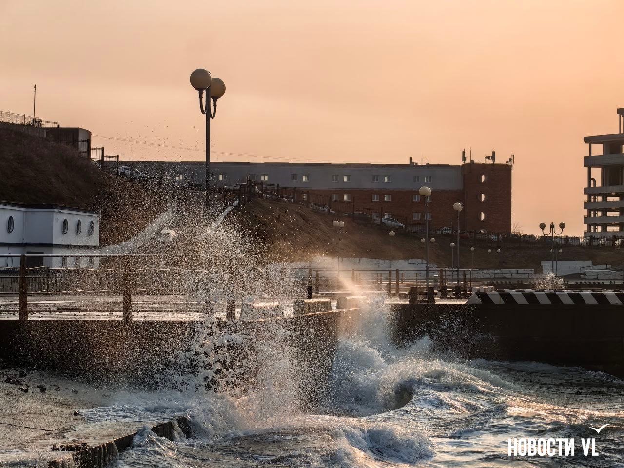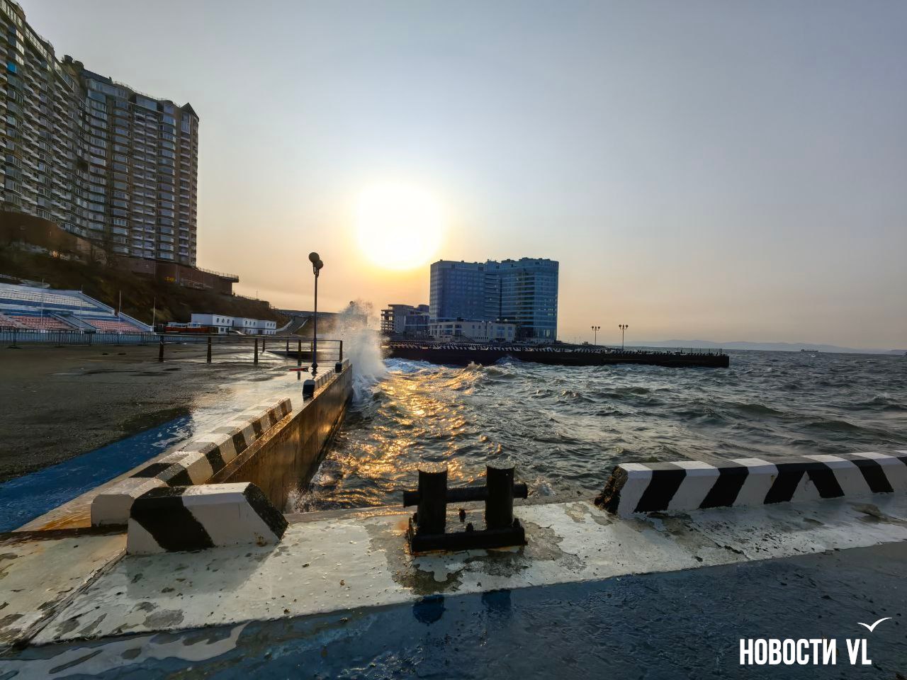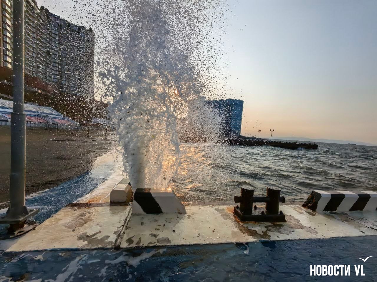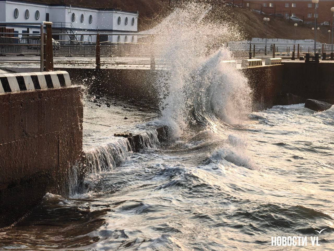 Штормовой закат: северные волны бьют на водной станции ТОФ