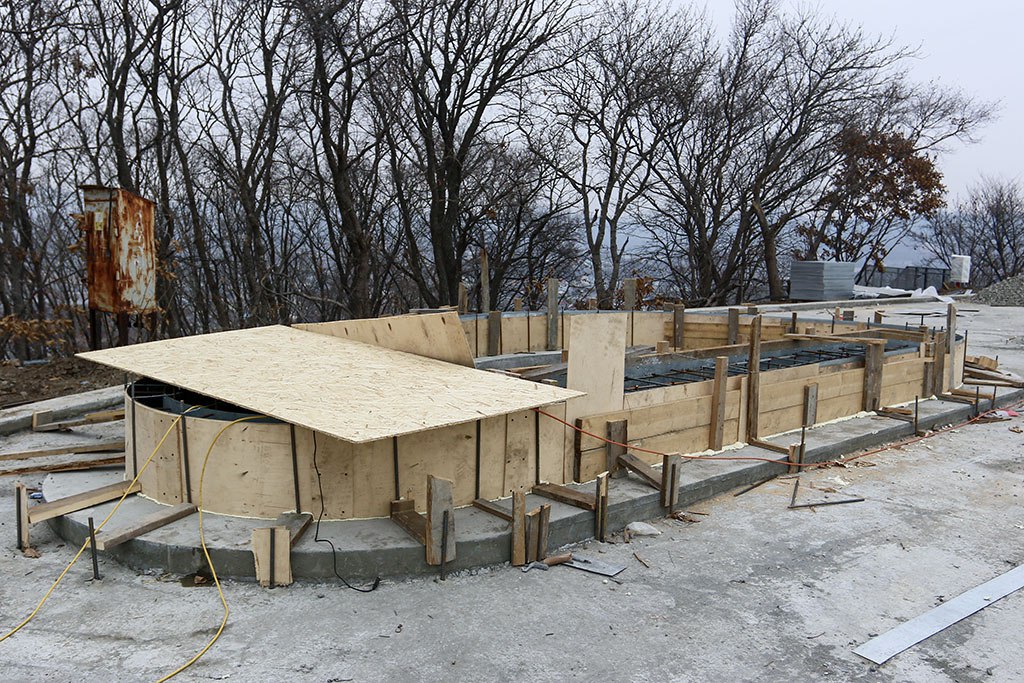 Завершаются работы по монтажу лестниц, настилов и ограждения, а также готова первая видовая площадка на Западной лестнице. Продолжается устройство дорожек и деревянного променада для прогулок. На территории подготовлены основания для малых архитектурных форм (качелей, скамеек и др.).