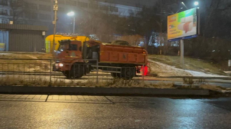 К 07:00 обработали основные проезды, сложные спуски и подъемы, объездную трассу Седанка – Патрокл и дороги Русского острова.