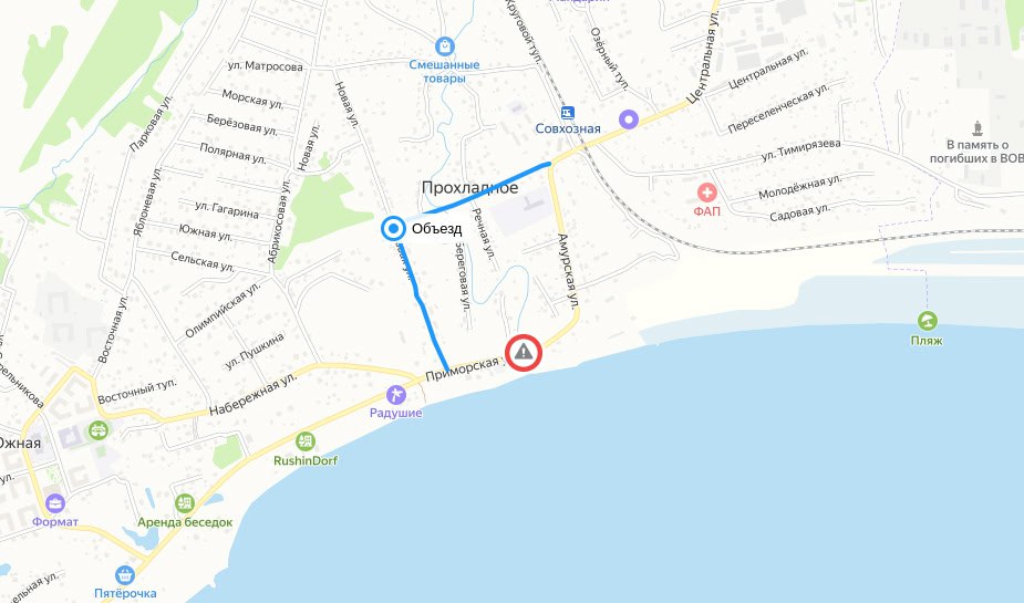 Сегодня в Прохладном закрыли проезд по улице Приморской из-за ремонта моста. Объезжать участок предлагают по улицам Новой и Центральной. Сегодня с утра там произошло ДТП, сообщает наш читатель.