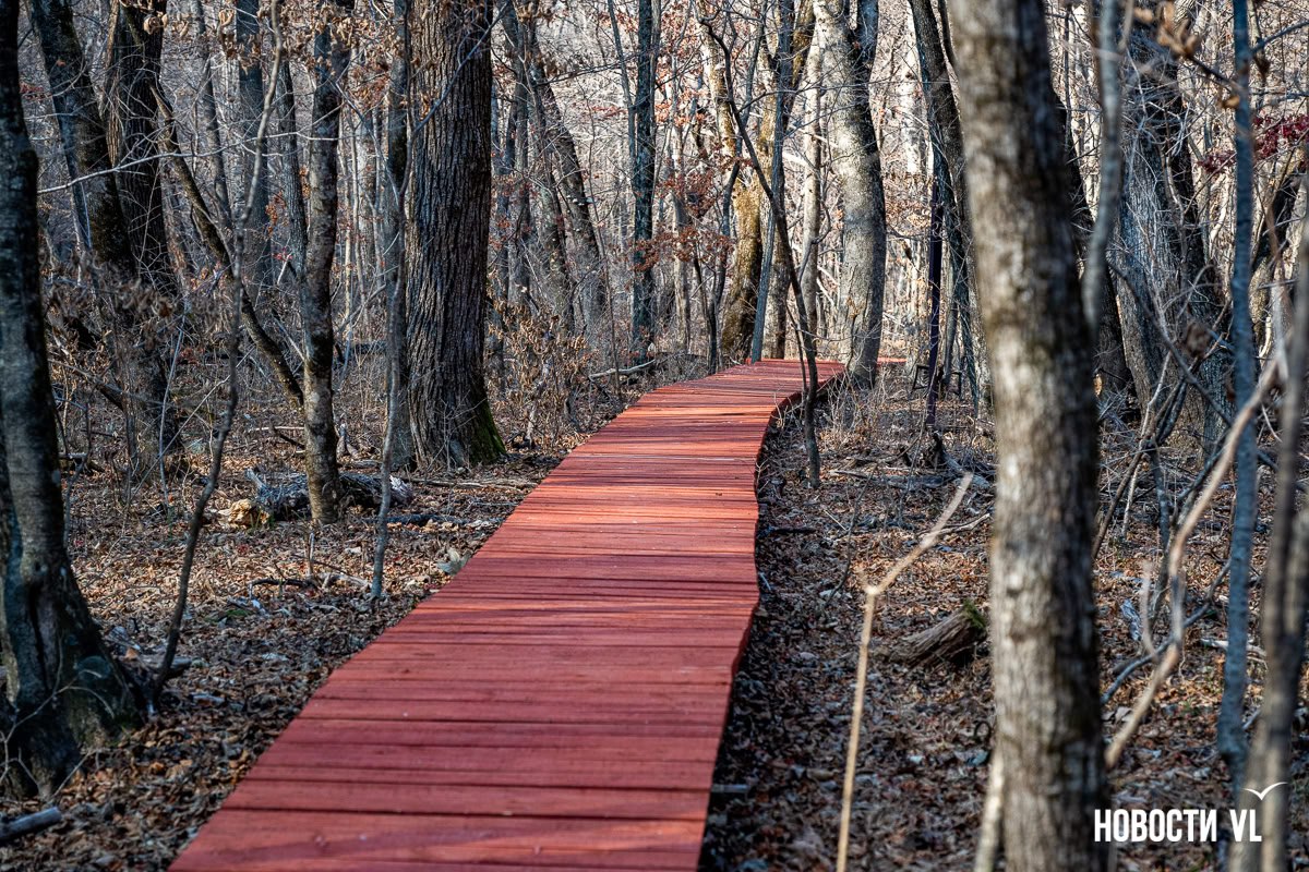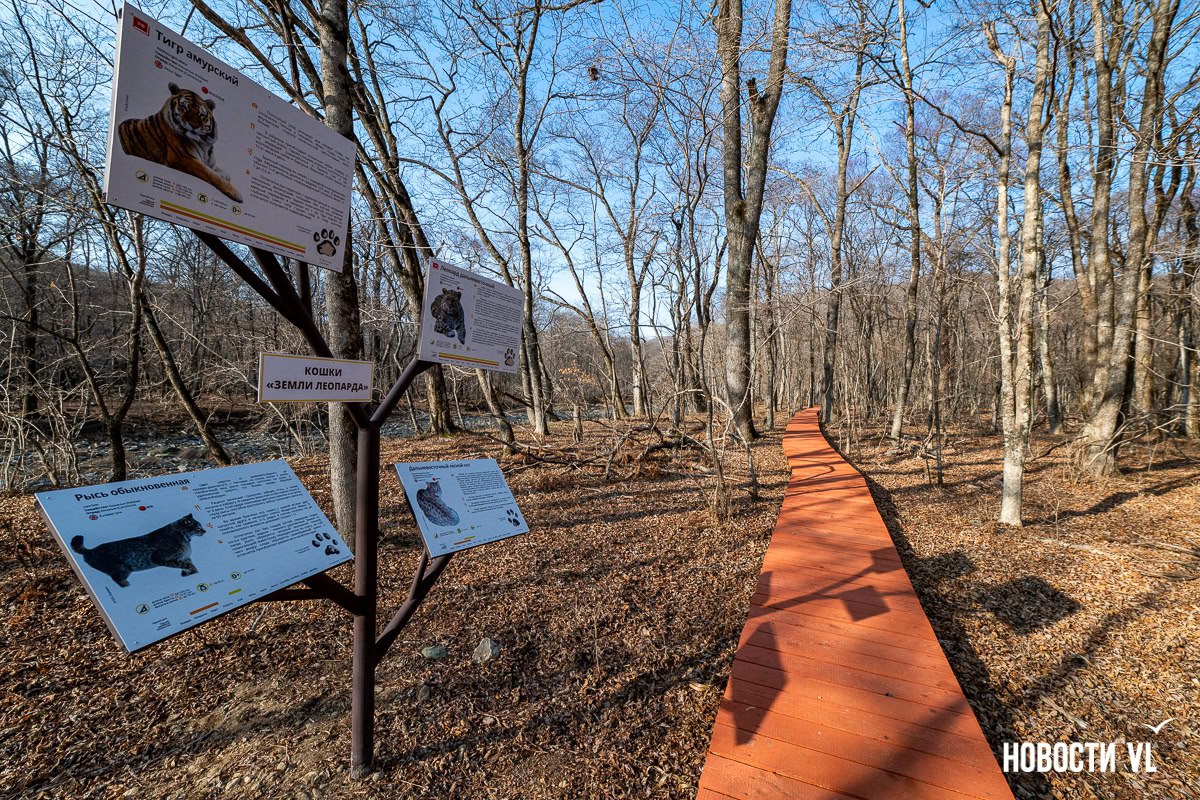 Новую экотропу «Навстречу мечте» открыли в нацпарке «Земля леопарда», на территории заповедника «Кедровая падь». Километровый маршрут с деревянным настилом проходит вдоль реки Кедровой – и знакомит с историей фото- и видеосъёмки одного из редчайших животных планеты – дальневосточного леопарда. Экскурсию по ней лучше бронировать заранее, а для самостоятельного посещения нужно будет купить билет в визит-центре нацпарка в посёлке Барабаш.