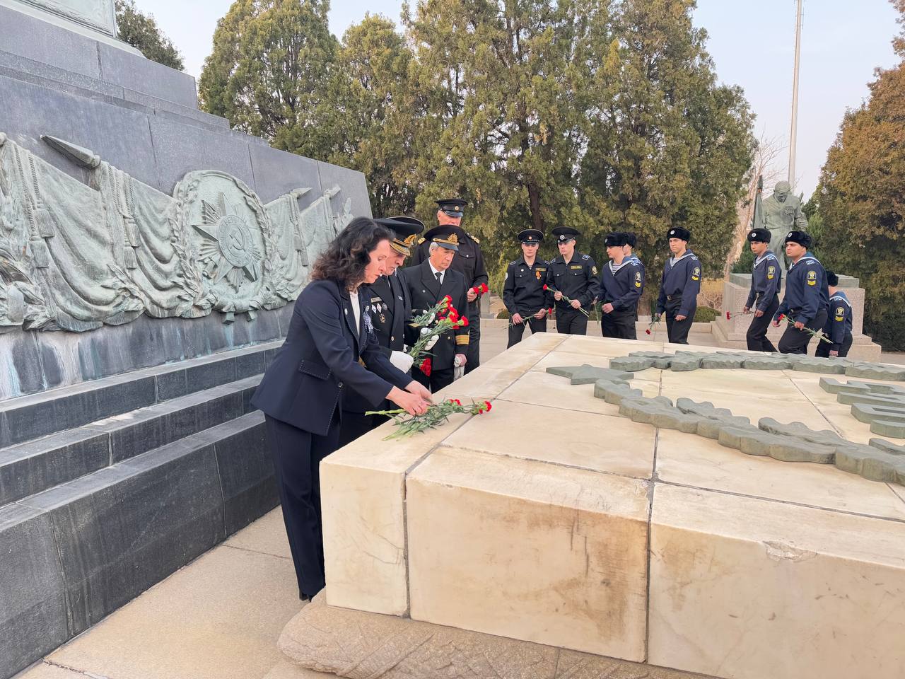 23 ноября на территории Советского воинского кладбища в районе Люйшунькоу г.Даляня Генконсул России в Шэньяне Н.С.Прыжкова, капитан учебного парусного судна Н.К.Зорченко и команда фрегата «Паллада» приняли участие в торжественной церемонии возложения венков и цветов к Памятнику советским воинам.