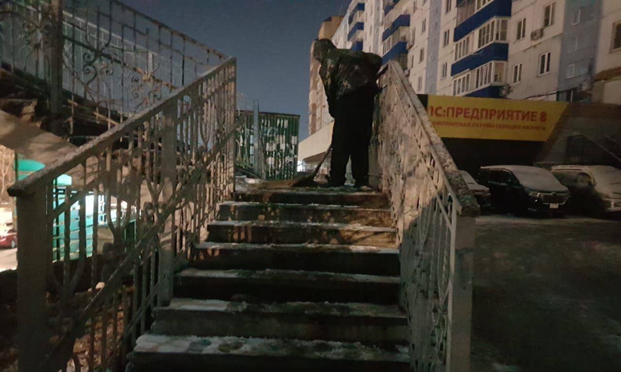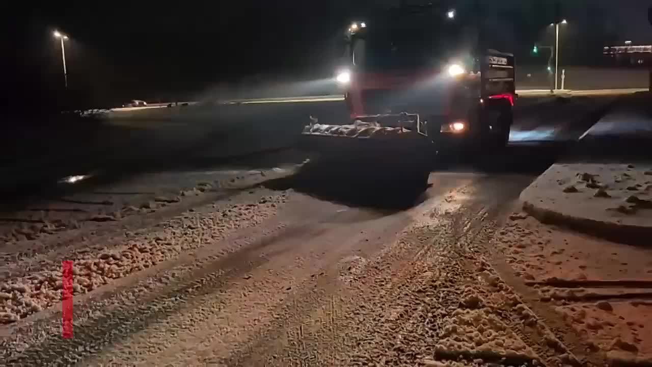 Минувшей ночью в работах было задействовано порядка 100 единиц спецтехники «СГТ», с помощью которой дорожники обработали опасные проезды в городе.