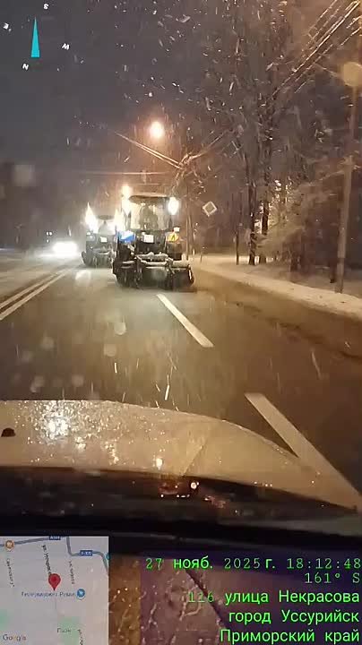 В Уссурийске дорожники вели расчистку от снега всю ночь. Все основные улицы и проезды города и социальные объекты убраны и просыпаны песко-солевой смесью