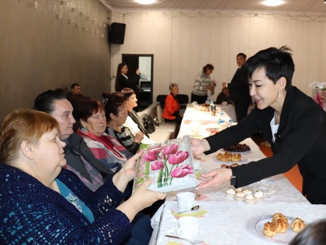 Депутат #ЗСПК Юлия Пак, глава округа Алексей Губайдуллин, председатель Думы Елена Деева, военный комиссар Александр Третьяков и социальный координатор фонда "Защитники Отечества" Оксана Капралова выразили поддержку женщинам.