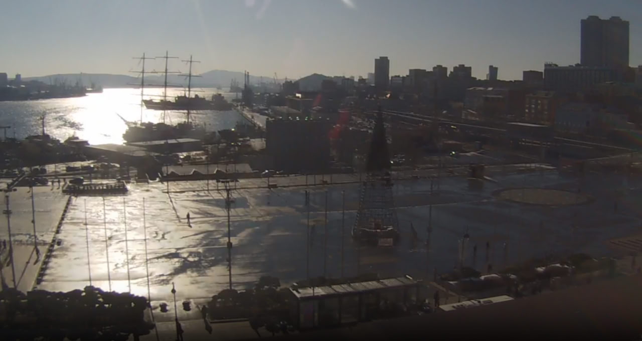 Центральная площадь сегодня уже несколько раз сменила своё назначение. Утром пешеходная часть была покрыта ледяной коркой, а когда пригрело солнце - всё начало таять.