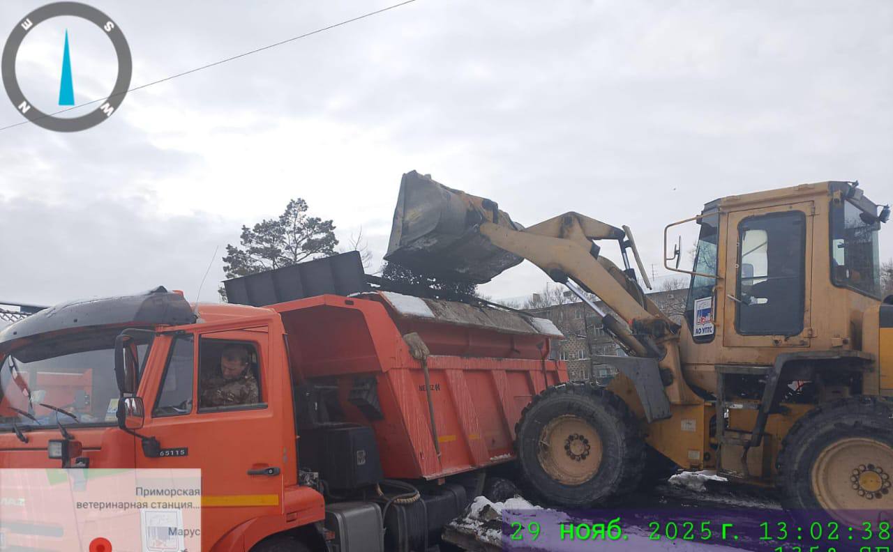 Спецтехника продолжает работать на улицах Уссурийска.