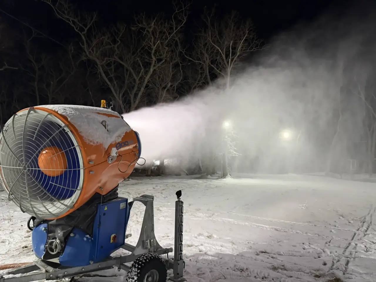 Специалисты активно работают над оснежением трассы, чтобы обеспечить идеальное покрытие.