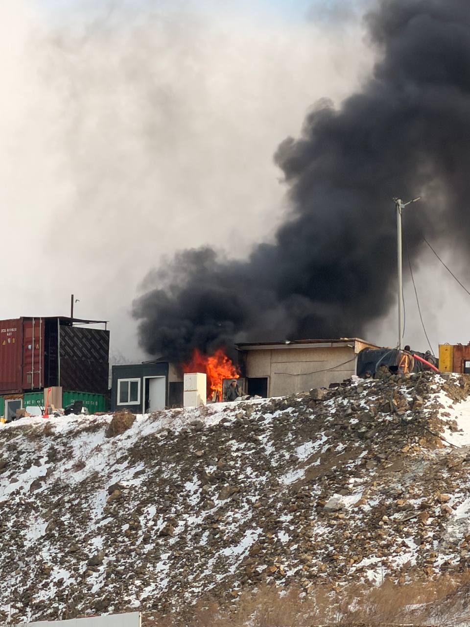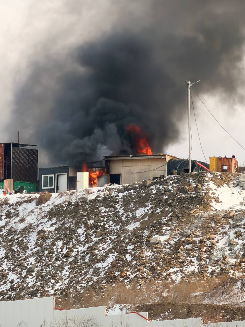 Сегодня в Снеговой Пади на улице Полковника Фесюна был пожар на одной из стройплощадок. Вероятно, горел утеплитель.