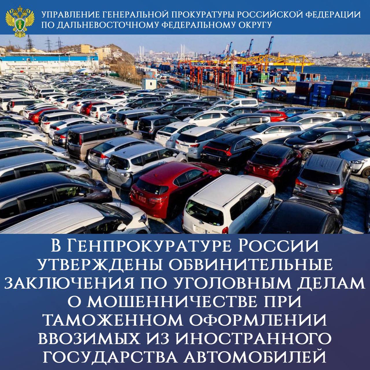 В Генпрокуратуре России утверждены обвинительные заключения по уголовным делам о мошенничестве при таможенном оформлении ввозимых из иностранного государства автомобилей