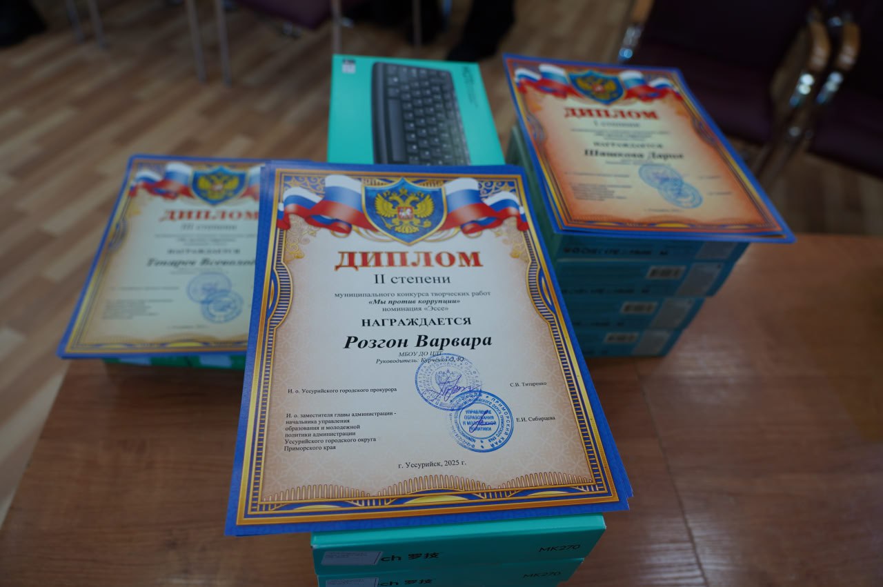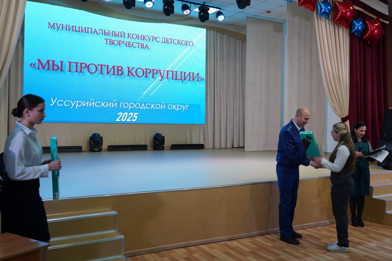 Церемония награждения победителей муниципального творческого конкурса «Мы – против коррупции!» состоялась в Центре детского творчества. Мероприятие было организовано совместно управлением образования и молодежной политики, отделом муниципальной службы и кадров администрации Уссурийского городского округа и Уссурийской городской прокуратурой.