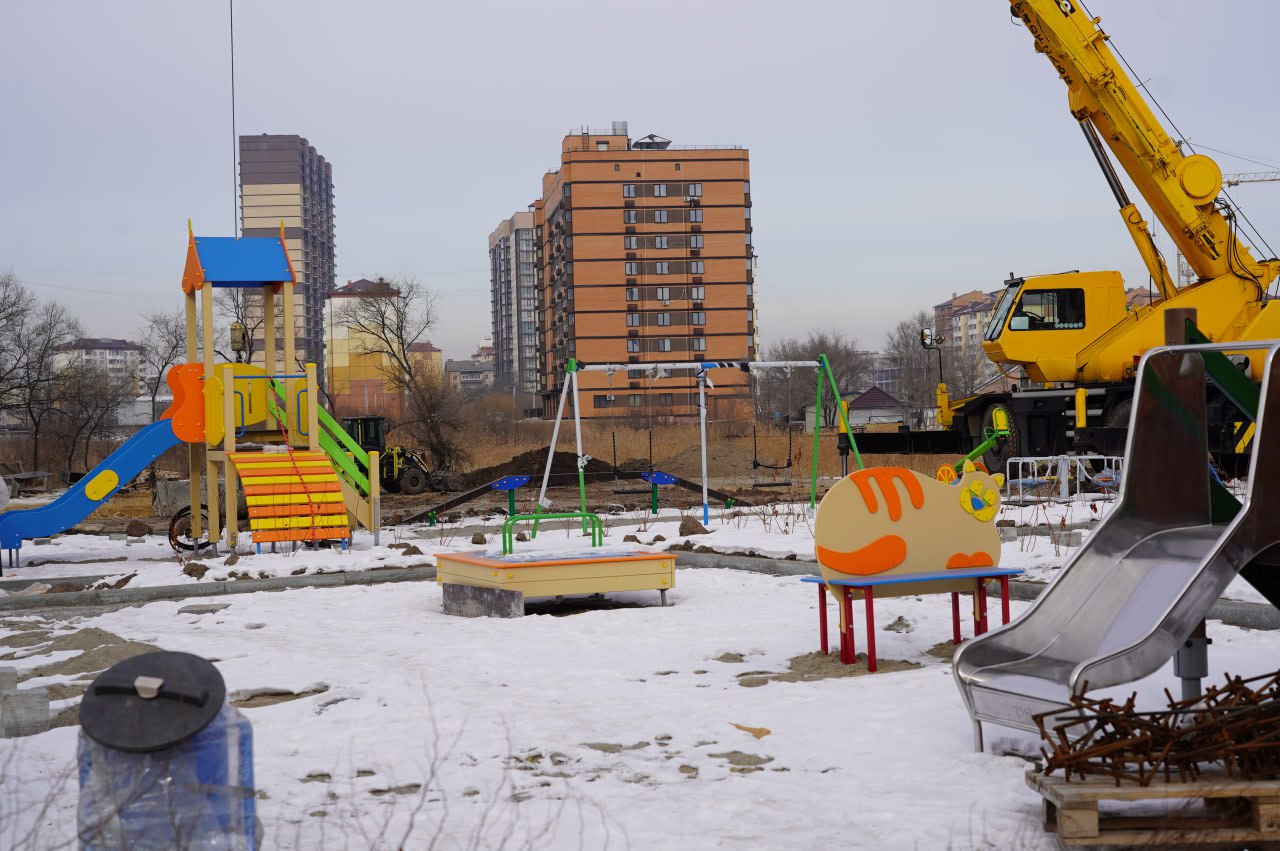 Радует, что работы по благоустройству прилегающей территории и установке современных детских игровых площадок уже полностью завершены. Сейчас на улице остался монтаж ограждения и отделка фасада.