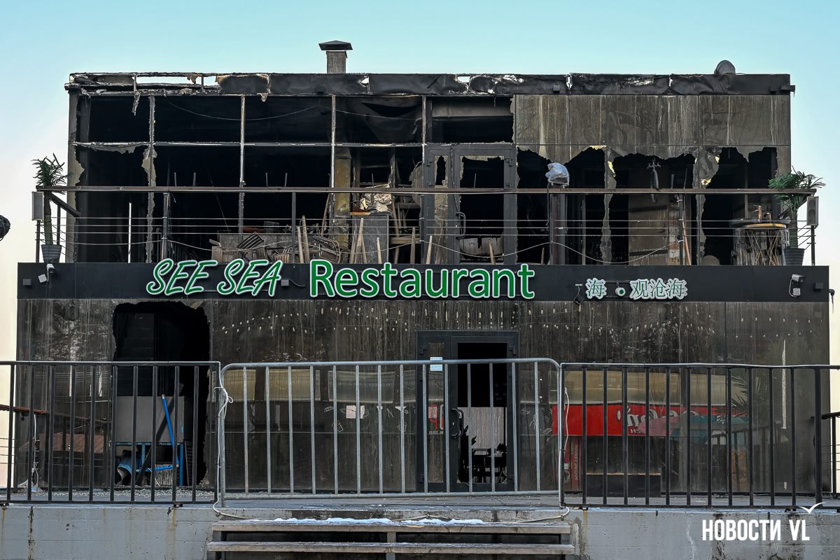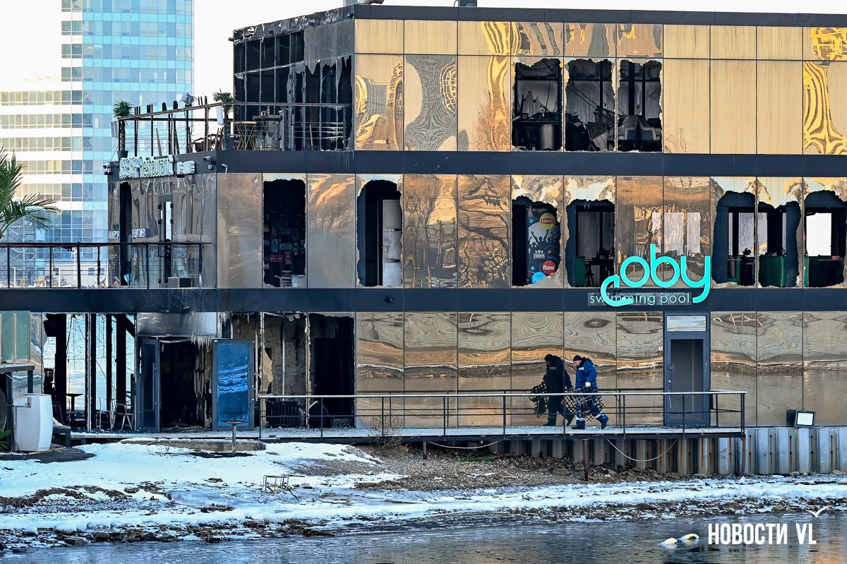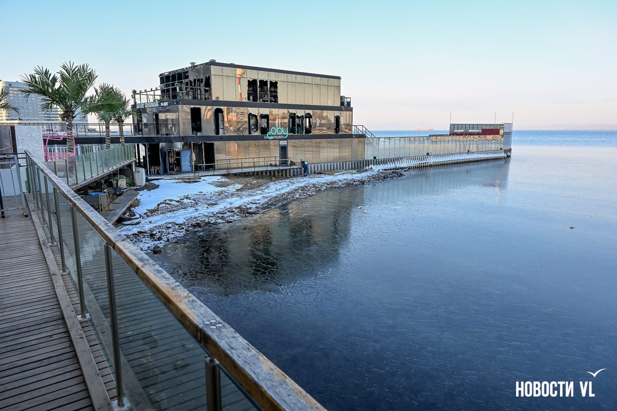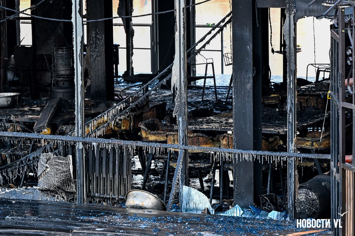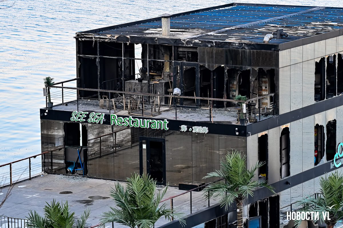 Ночью во Владивостоке вспыхнул пожар на барже с рестораном на набережной Спортивной гавани