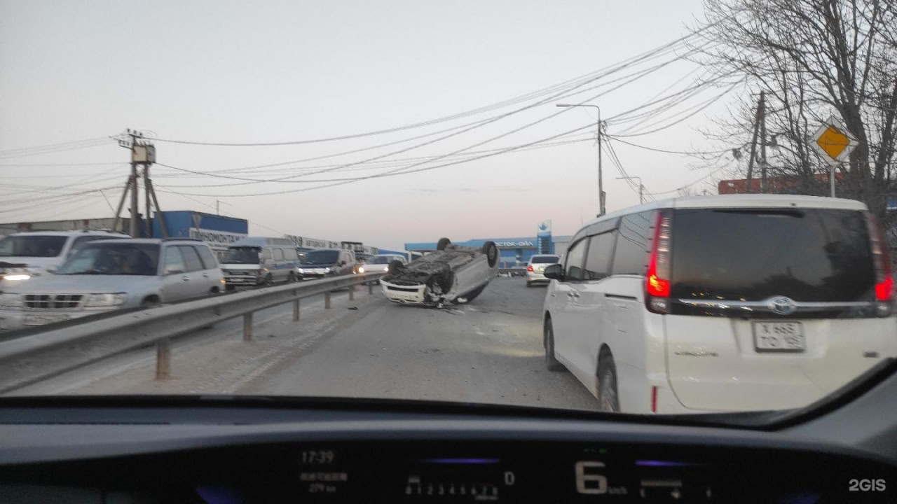 На Выселковой в районе поворота на Китай-город перевернулся Toyota Prius/ Собрался крупный затор со стороны Рудневского моста.