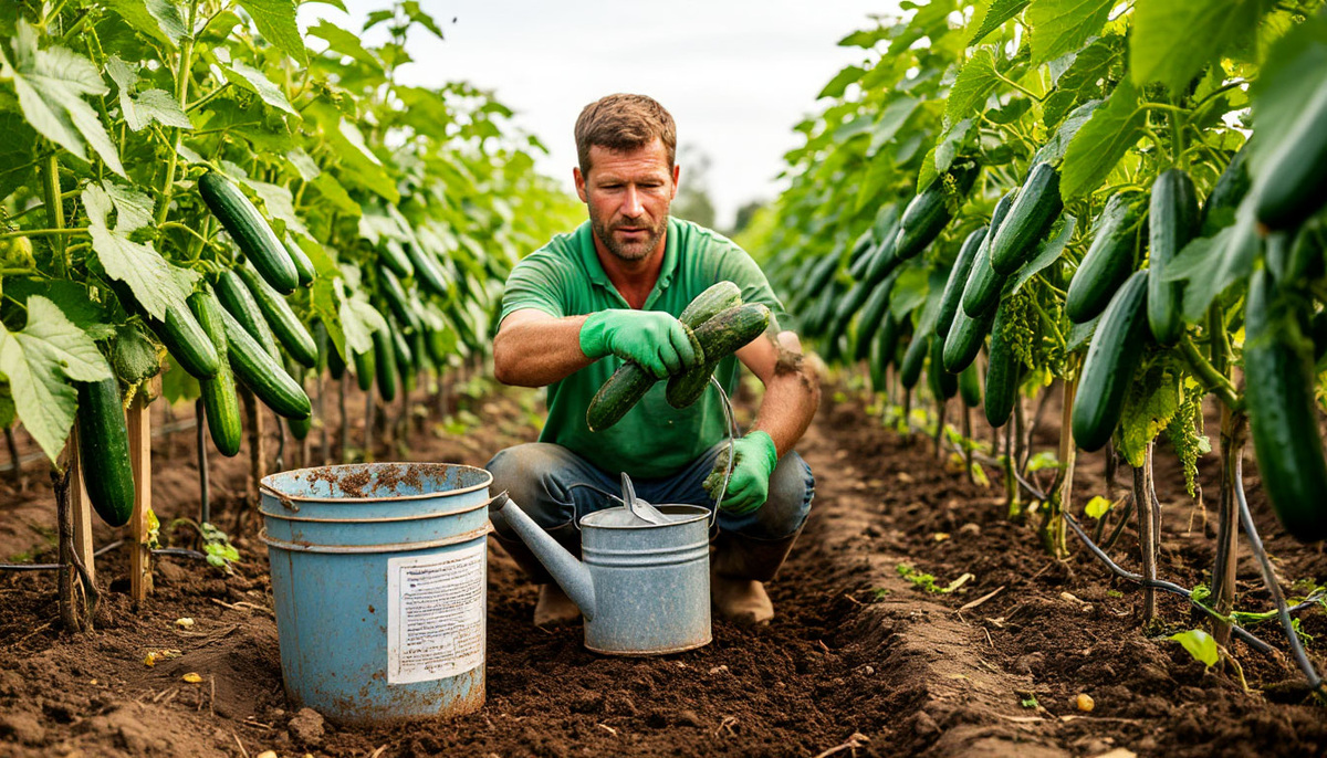 Федор Иванович рекомендует добавлять 3 столовые ложки соды в 10 литрах тёплой воды для полива. Однако важно не переборщить: иначе можно получить "солёные" огурцы.