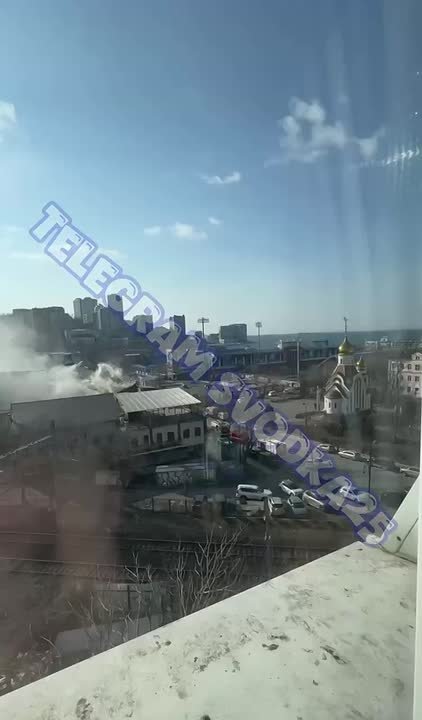 Сильный пожар в здании ресторана тушат в центре Владивостока