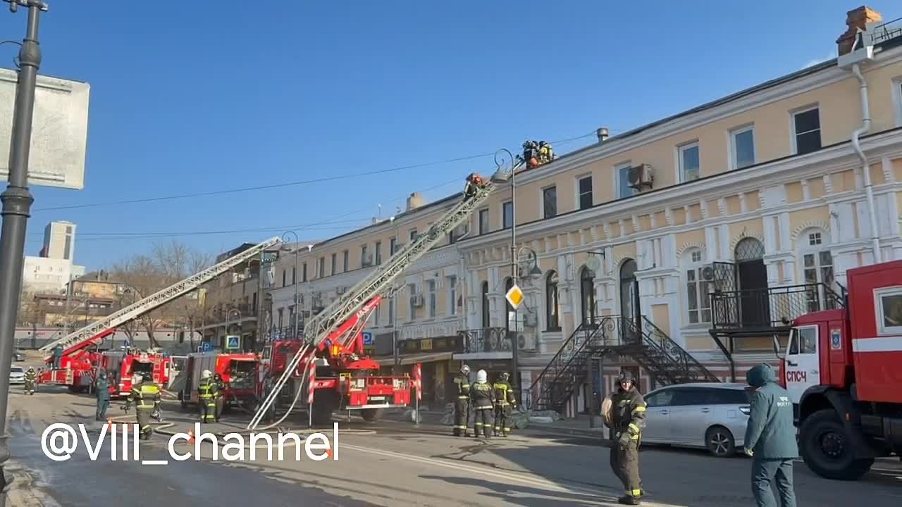 Крыша здания, в котором находятся рестораны, загорелась во Владивостоке.